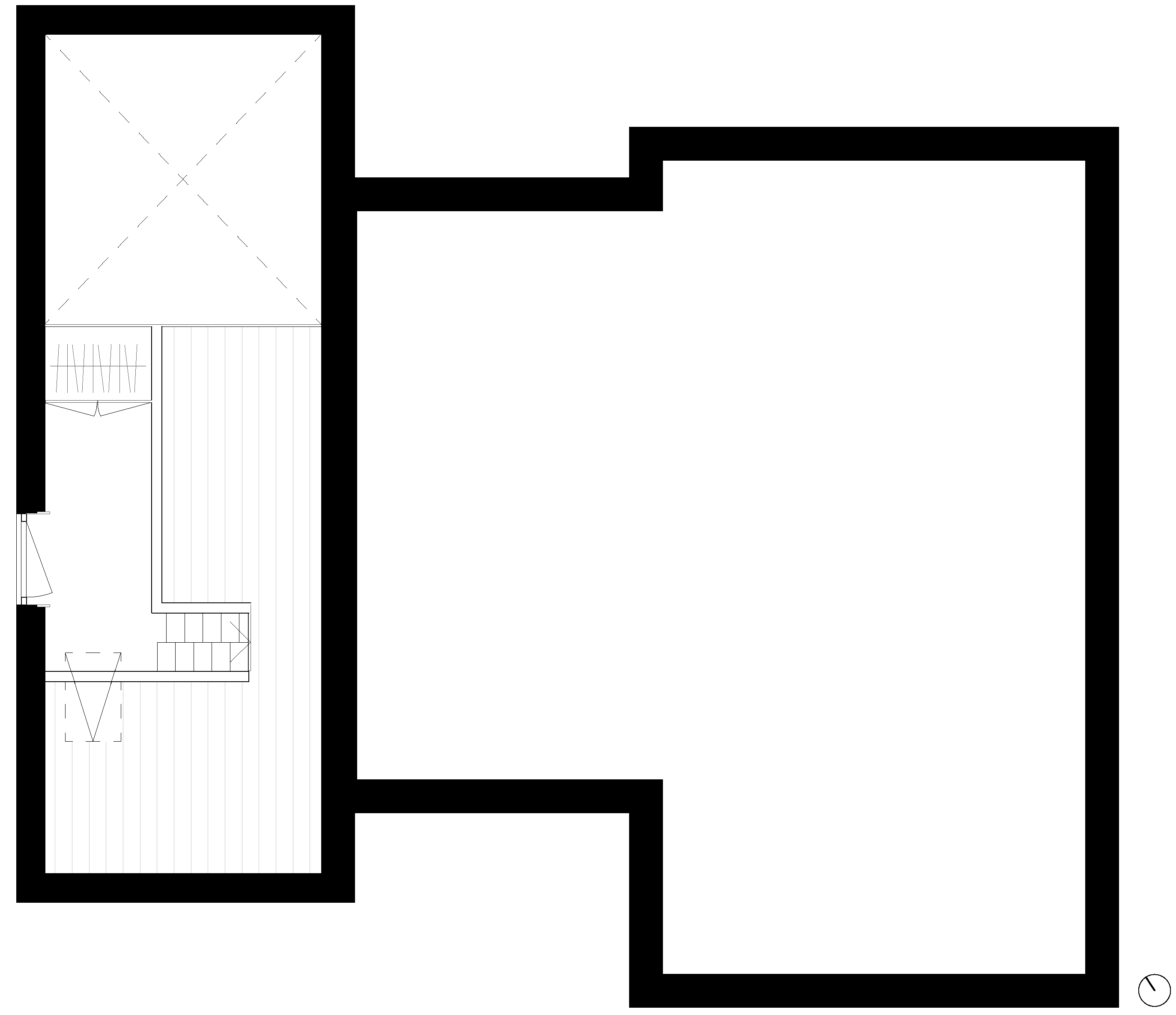 Descriptif technique : Cette extension de 25 m² abrite une suite parentale ainsi qu’un espace en sous-pente dédié au stockage. Le dressing en double hauteur est la rotule de distribution de l’espace traversant. Une fenêtre haute permet une vue profonde vers l’ouest et souligne la dimension verticale du dressing, quand celles de la salle de bain et de la chambre offrent des cadrages plus serrés pour la gestion des vis-à-vis. A l’intérieur, un aménagement sur mesure intégralement en contreplaqué de bouleau connecte ces espaces. La mezzanine mansardée et éclairée naturellement devient un grenier aux usages flexibles.