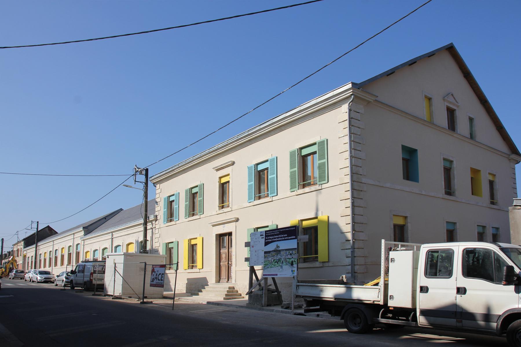 Une ancienne école désaffectée depuis 10 ans en plein centre-bourg. Comment redonner vie à ce site, lui redonner un caractère public tout en développant un programme privé, de 13 logements sociaux PLAI ? Par la mise en place d'un local commun ouvert à tous, auquel on accède par l’ancienne porte principale de l’école. Aussi par le choix de laisser la parcelle ouverte, sans portail ni dispositif de contrôle. Enfin par la réduction des places de stationnement, libérant le reste du site à des jardins, un espace couvert (l’ancien préau) et circulations douces.