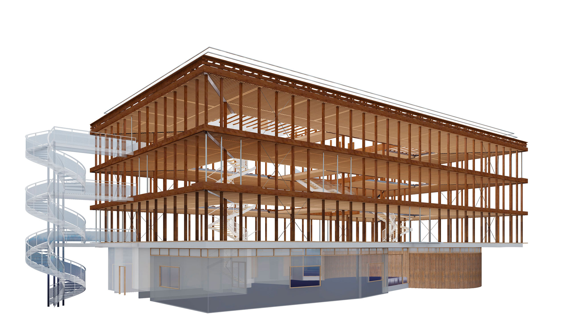 Descriptif technique : Système constructif Poteaux / Poutres et dalles Solivium® développées par CBS et déclinée en essences Guyanaises Angélique et Grignon (1 700 m2 de planchers / 216 m3 de bois Guyanais / 150 dm3 au m2 de plancher / Préfabrication en modules / Linteaux et porteurs de l'épaisseur du plancher / Sous-face sectionneur d'onde acoustique / Chape sèche et résilient acoustique pour les bruits d'impacts / Passage des réseaux dans les dalles bois / Faux-plafond intégrés et démontables / Films et Timelaps du projet disponibles PEFC (Gestion forestière durable) NF Contreplaqués (CTBX - CTBC) Marquage CE