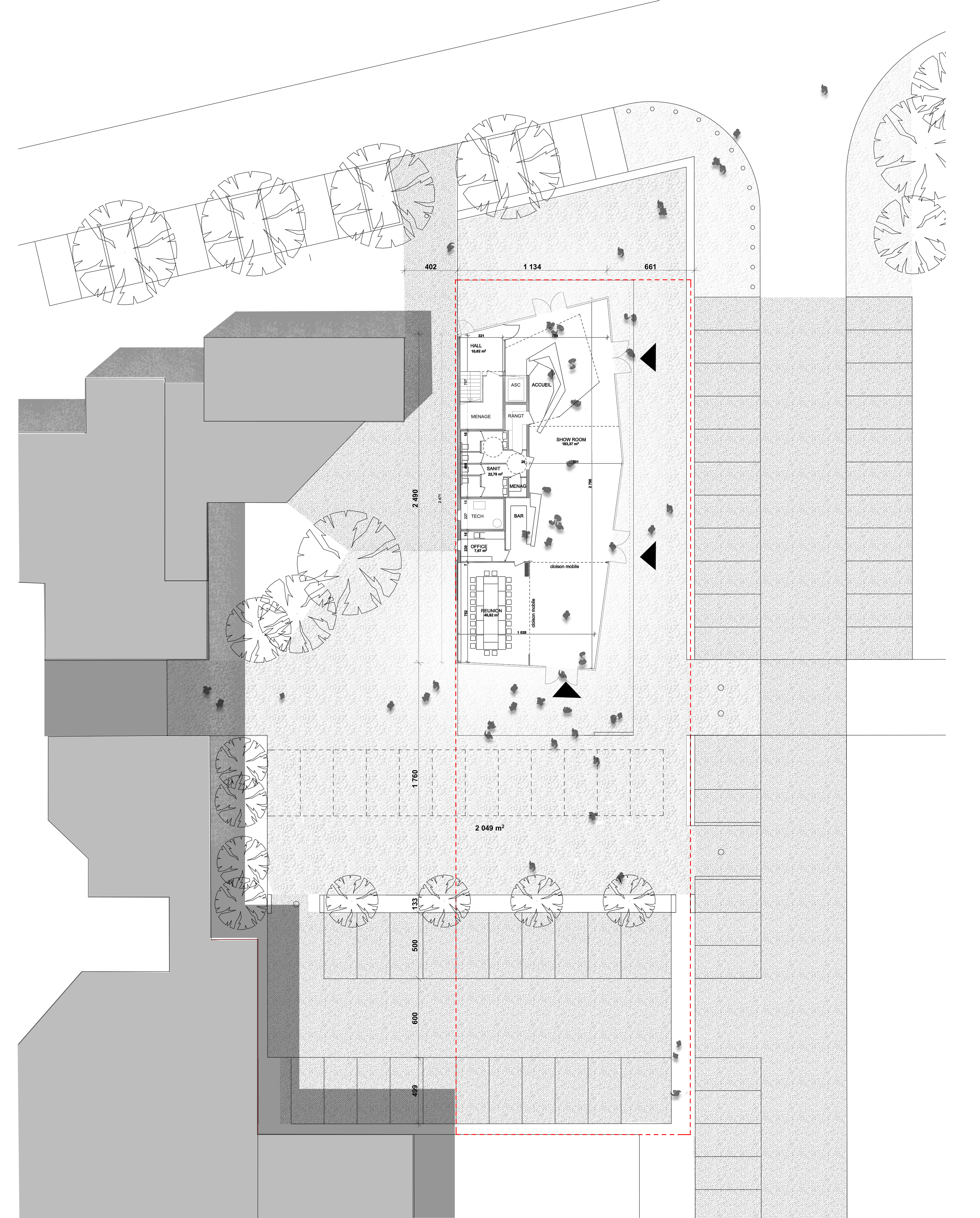 Ce bâtiment novateur structure l’entrée du port en marquant l’angle urbain par son volume haut habillé de voiles. Il crée un signal fort et lisible tout en valorisant le site. C’est un équipement ouvert sur l’espace public, un vaste parvis se développe depuis la route de Port la Forêt, permettant une appropriation du lieu en lien avec le bâtiment et le port. Au RDC, un volume extrêmement ouvert crée des transparences entre intérieurs et extérieurs. Des espaces de co-working se développent sur deux niveaux, en toiture une terrasse belvédère offre des vues lointaines dégagées.