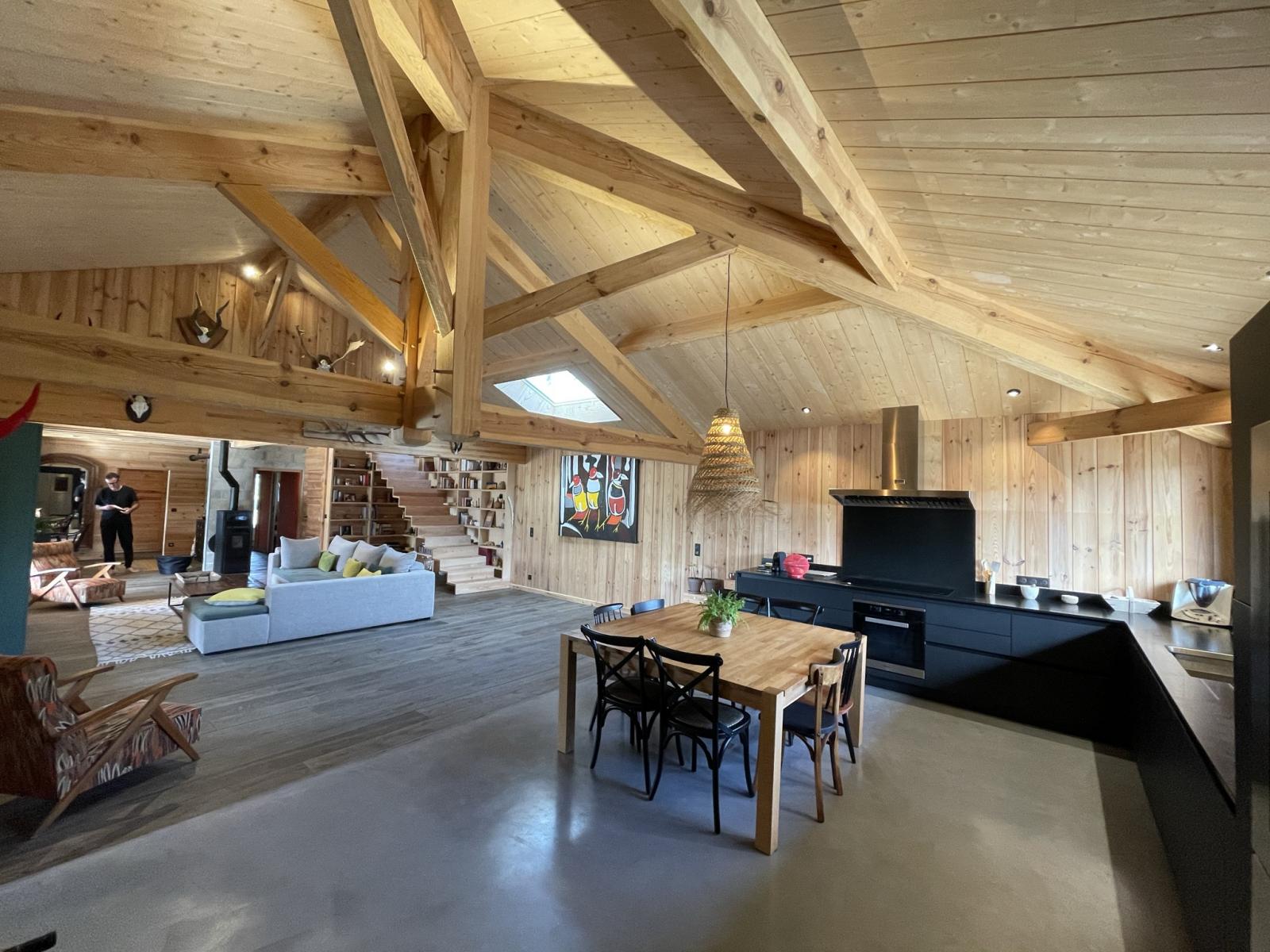 Descriptif technique : La tradition et la noblesse du bois n’interdit pas l’utilisation de matériaux modernes. En ce sens des panneaux isolants de toiture en PSE ont été utilisés pour leur performance d’isolation très élevée. Concernant la structure des murs ossatures bois, ces derniers sont de type « perspirants », le contreventement en contreplaqué de pin de landes CTBX ayant été placé côté intérieur ossature. Pour améliorer le confort d’été, en complément des murs à inertie, des panneaux de bois dense sont placés côté extérieur mur avant de recevoir le bardage. PEFC (Gestion forestière durable) NF Contreplaqués (CTBX - CTBC)
