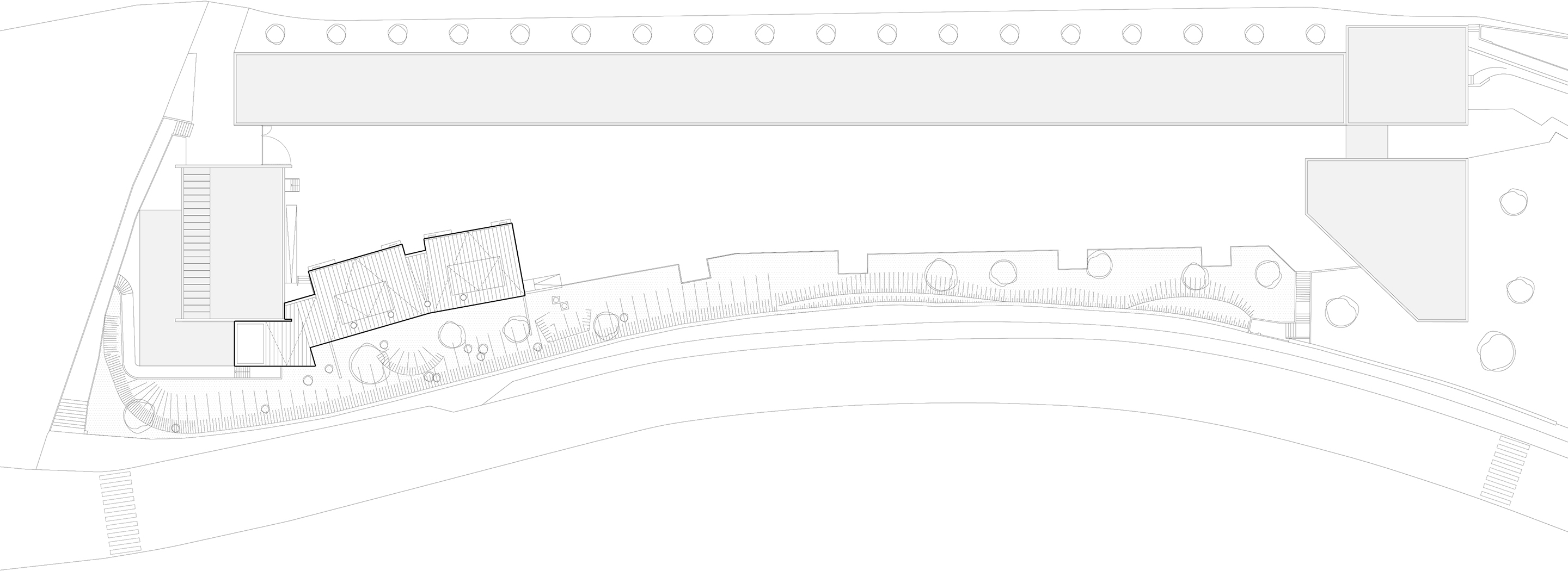 Descriptif technique : Le bâtiment repose sur des fondations et une dalle en béton. Il s'adosse au talus planté existant. Un voile de soutènement en béton coulé en place a été réalisé afin de contenir les terres du talus. L'ossature du bâtiment a été réalisée en bois. Elles est constituée de murs à ossature bois et de poteaux bois, surmontés d'une charpente bois. L'enveloppe extérieure est constituée d'un bardage bois en douglas avec imprégnation grise par autoclave. Ce traitement offre une protection performante et durable contre les agressions naturelles et permet un rendu naturel et homogène. PEFC (Gestion forestière durable) FSC (Gestion forestière responsable)