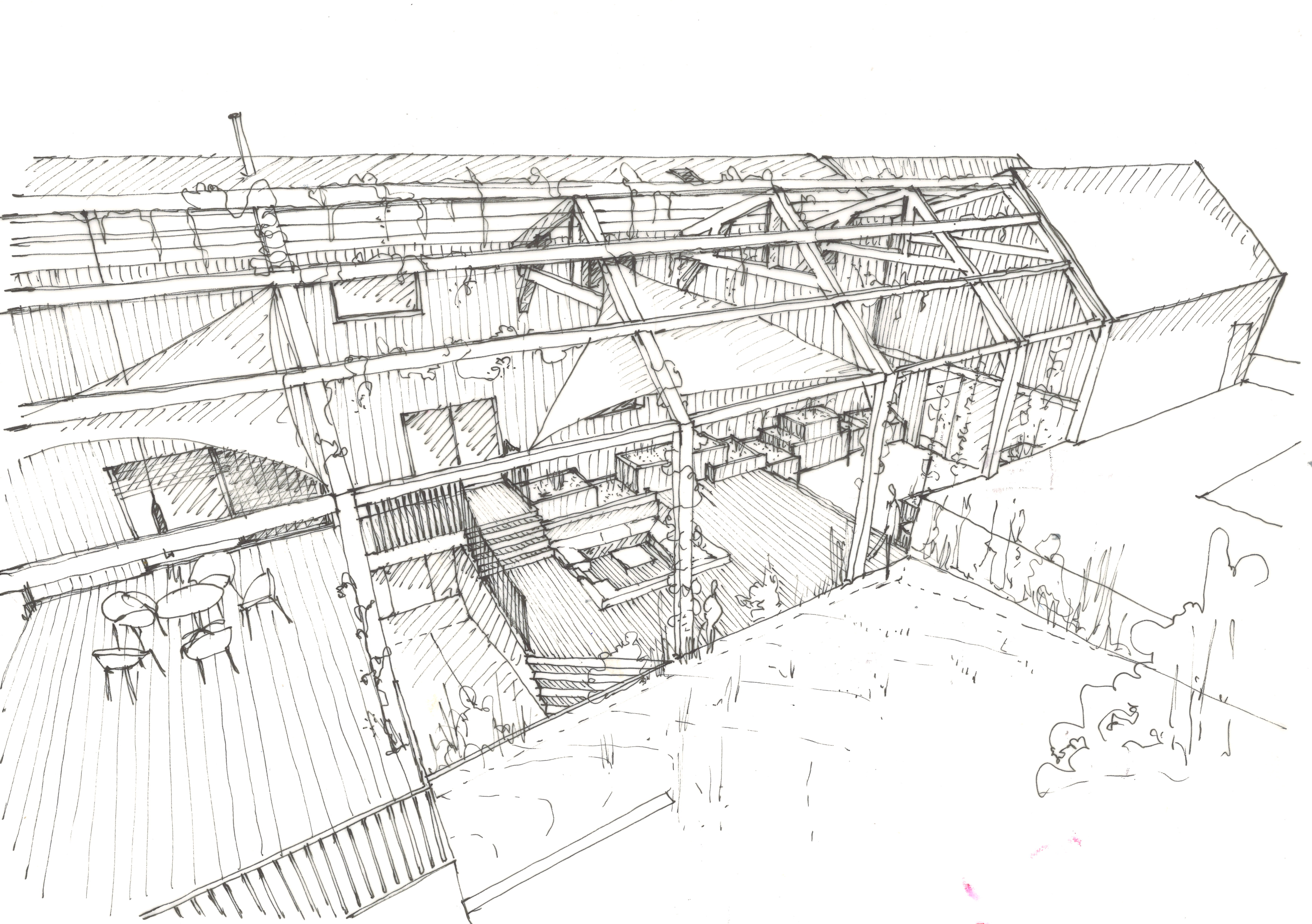 Une maison passive s'intègre dans ce moulin du XVIIIe. L'intention architecturale fut de rendre au moulin sa forme originelle, en mettant en valeur le volume en pierre, où s'intègre la partie habitation. Le volume industriel mitoyen a été gardé, il accueille le garage. Un écorché sur le volume Sud fut réalisé pour créer une pergola/jardin d'hiver en révélant le dernier volume originel du moulin. Sur chaque volume, la forme et la structure est d'origine, le traitement est contemporain. Le tissage entre l'existant et le neuf fait communier la nouvelle touche contemporaine et l'histoire du bâti.