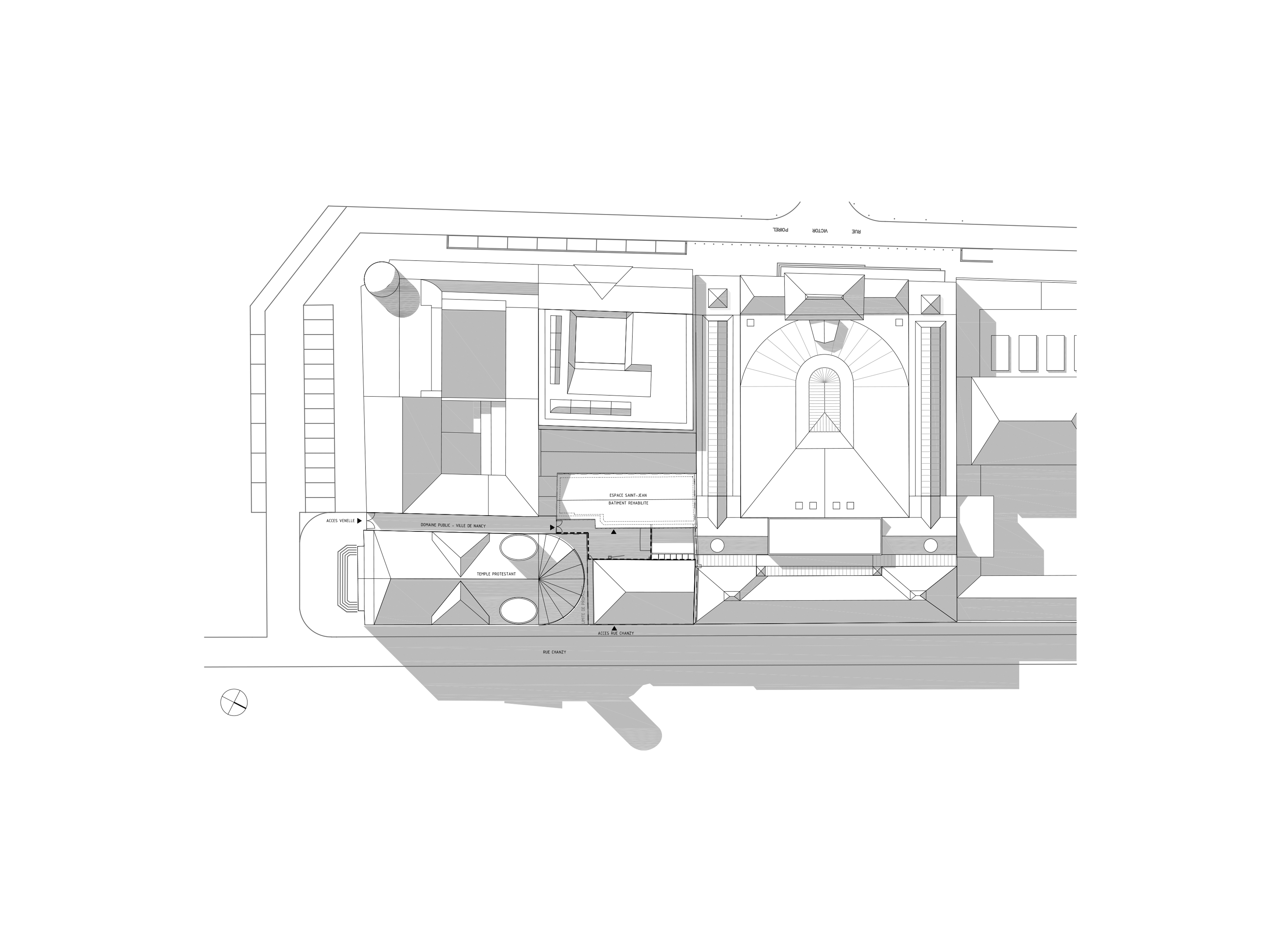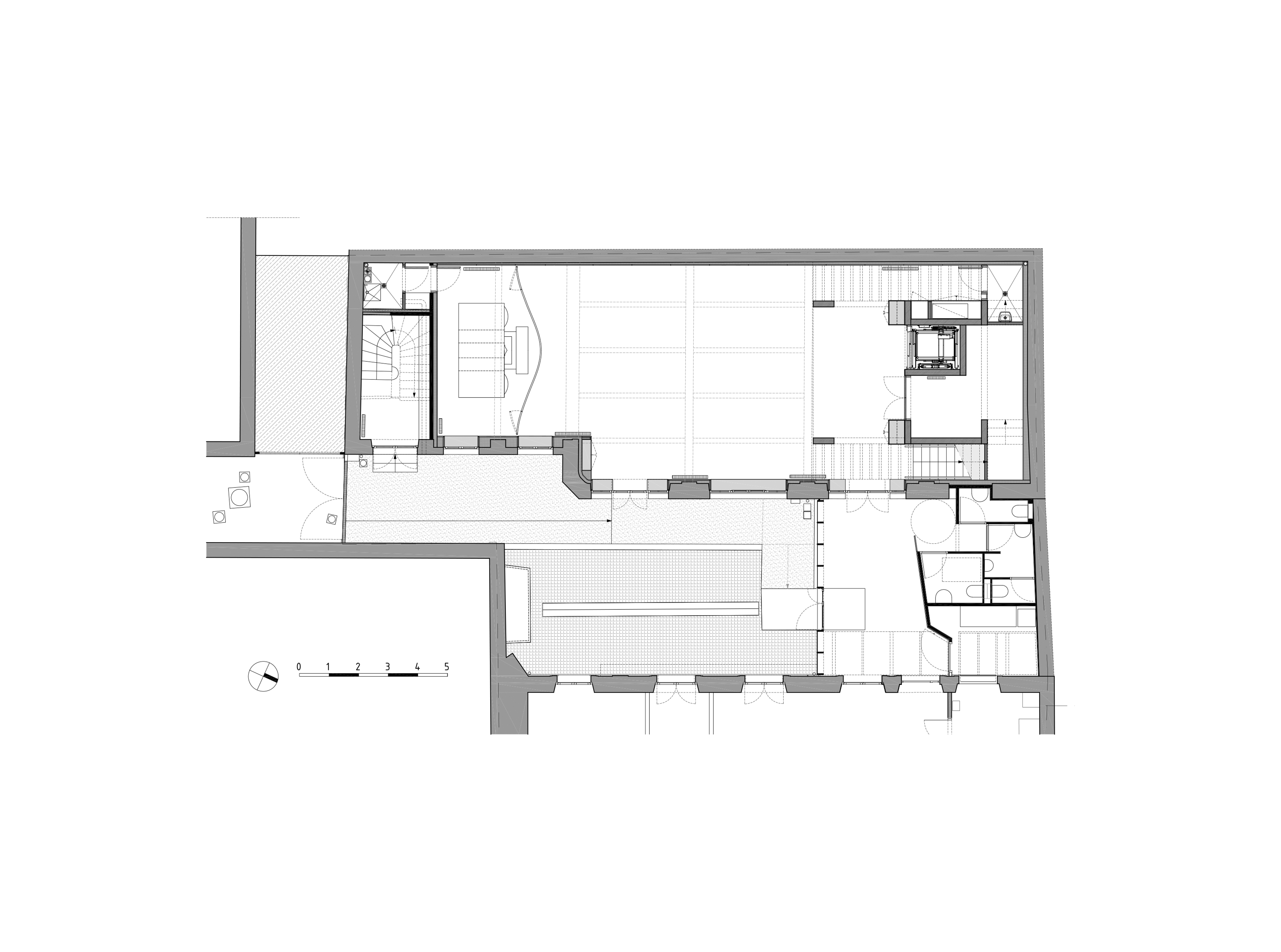 Le bâtiment exploité par l'association est destiné à de multiples usages : distribution des denrées données par la banque alimentaire, vente de livres d'occasion et de fripes, salle de conférence ou encore salle de répétition mise à disposition des élèves du conservatoire. L’enjeu majeur du projet est d’envisager des espaces modulables au sein d’un bâtiment existant au gabarit contraint et immuable. Les éléments structurels existants sont dès lors conservés et valorisés tandis qu’une structure mixte béton/bois permet la mise en œuvre de nouveaux planchers, d’un escalier et d’un ascenseur.