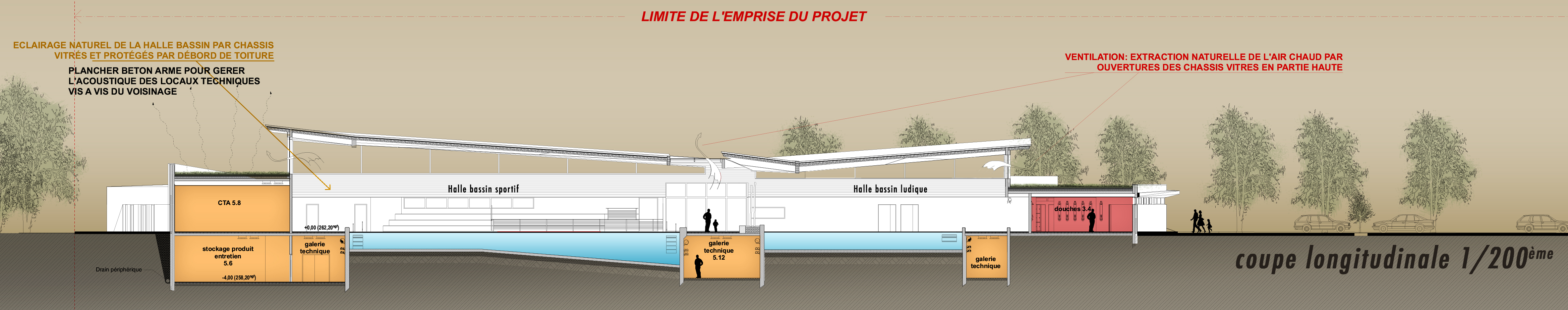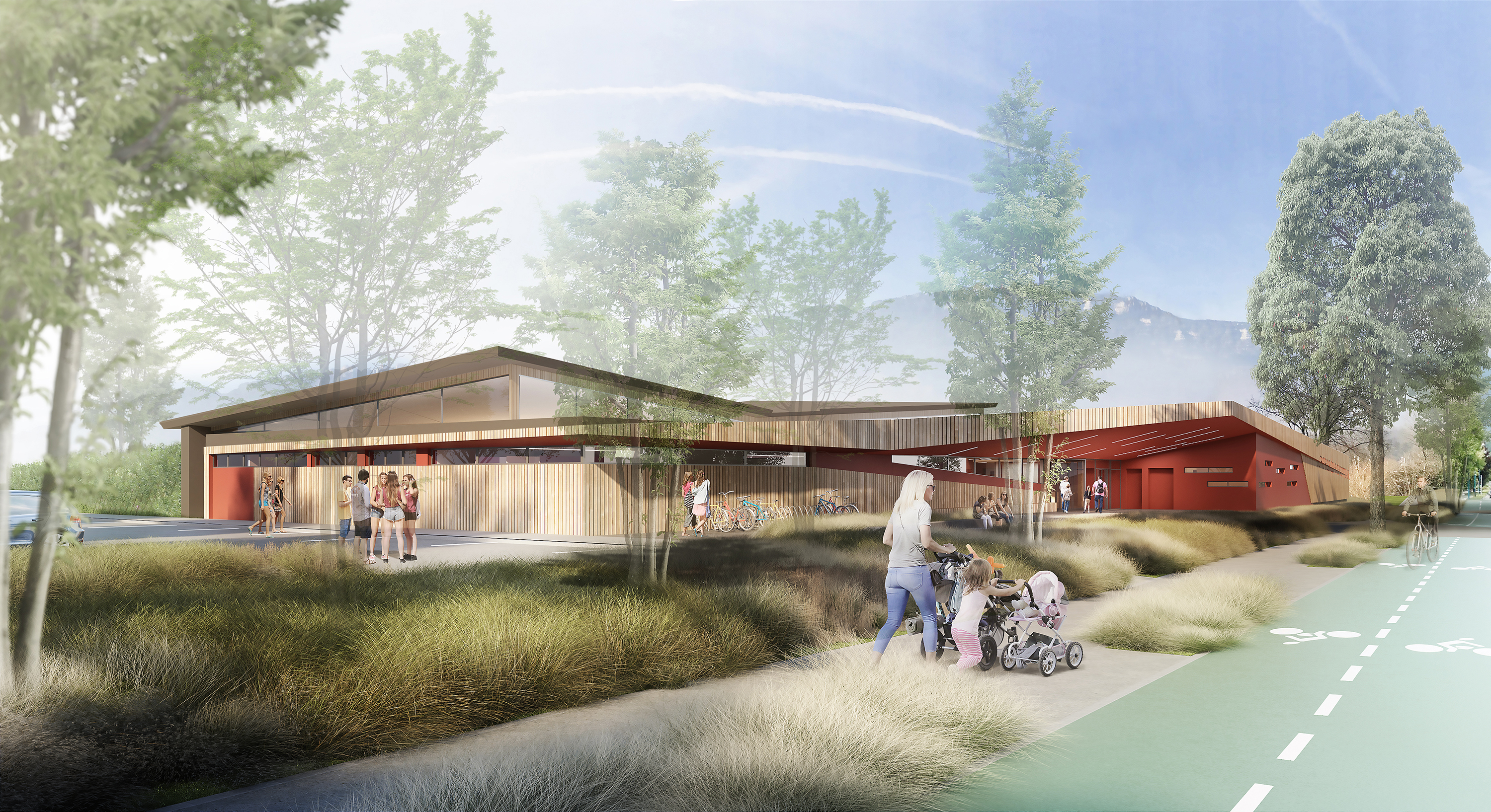 Le Centre nautique intercommunal du Grésivaudan se veut être un lien structurant entre son territoire, la ville de Pontcharra qui l'accueille et le grand paysage. L'implantation du bâtiment a été choisie avec la volonté d'allier : l'exposition au soleil des façades, la conservation des vues lointaines sur Belledonne et Chartreuse, la création d'un espace paysager agréable, l'organisation des accès pour sécuriser les flux piétons et voitures. La facilité d'accès et d'usage ont été vecteurs d'une architecture accueillante et signaux de l'ambition d'un nouvel équipement à destination de tous.