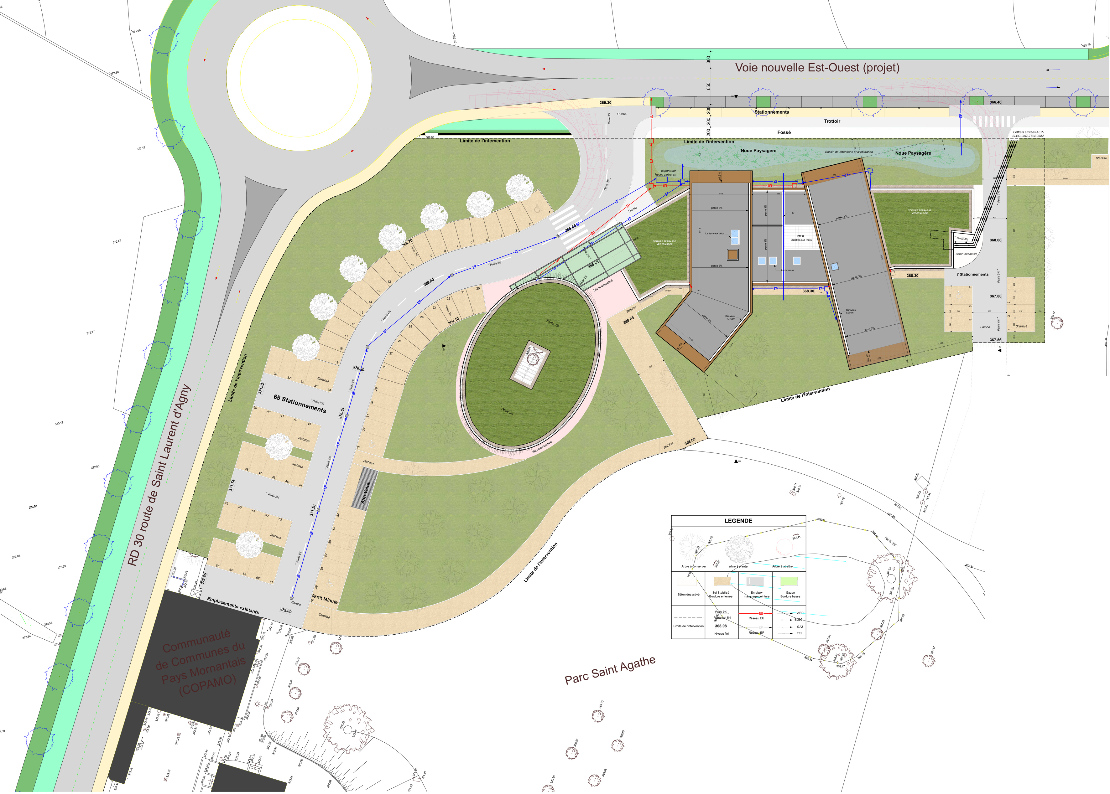 Approche environnementale : Nous avons développé un projet paysager respectueux de son environnement : très beaux arbres du site préservés, toiture végétalisée sur la salle du conseil et les rez-de-chaussée. Le bois a été utilisé pour toute la structure de l’étage et la salle du conseil réduisant le bilan carbone, proposant des espaces plus chaleureux, plus écologiques et plus sains. Caissons planchers (495 m2) fabriqués localement. Le projet est optimisé pour éclairer de façon généreuse toutes les pièces de travail, avec fenêtres toute hauteur, patio, éclairages zénithaux : limitation consommation énergétique lumière, confort de travail. 70% de la toiture est végétalisée.