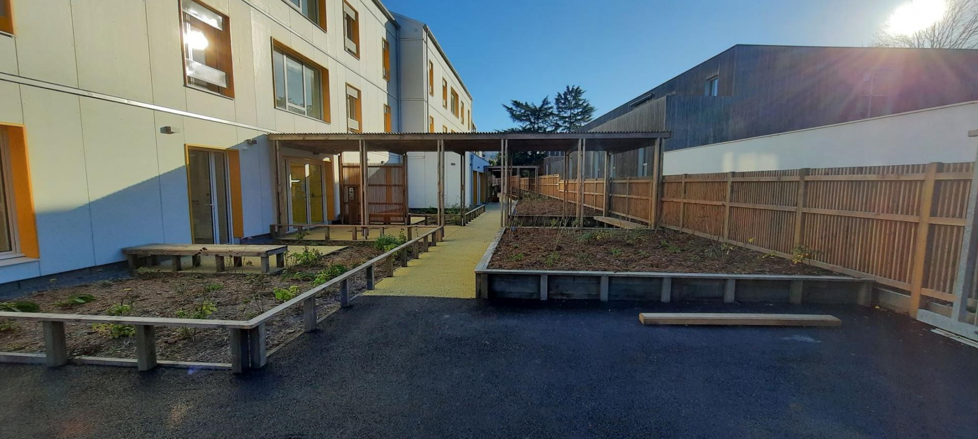 LA RENCONTRE est un projet de construction de 29 logements avec un jardin pour toutes et tous. Tout en longueur, pincé entre un vieux mur et une clôture le dessin du jardin a pris forme dans la continuité de l'architecture du bâtiment. L’usage massif du bois en fait l’ossature principale et règle la finesse des terrassements. Il offre un cadre soutenu à ce nouveau lieu de vie densément planté. Les allées disparaissent sous les ombrières des entrées. Les banquettes en creux accueillent les eaux de pluies qui s’y infiltrent et profitent aux plantes. Voiries, réseaux s’effacent pour faire jardin.