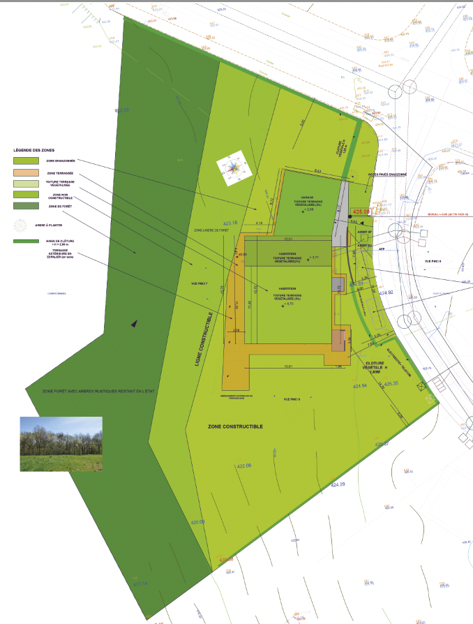 Approche environnementale : Comme tous nos projets, l'approche bioclimatique est privilégiée pour apporter du soleil pour la vitamine D2, la lumière pour l'éclairage naturel, et le noir dans les chambres pour la génération de mélatonine. Notre approche est avant tout dominée par l'aspect sanitaire, une maison saine pour un esprit vivace, avec des matériaux organiques comme les corps qui y habitent.