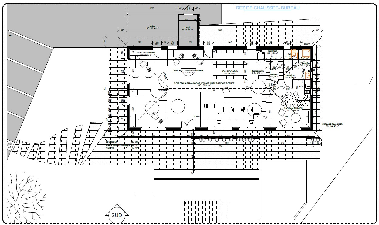 Le projet concerne un bâtiment de bureaux pour la société INGERIF (bureau d'étude VRD paysage) sur un terrain situé rue de l'Epinaube à Conlie 72240 en Sarthe 72. Le projet accueille une entreprise de 7 - 9 personnes et se compose d'un espace secrétariat ouvert sur un espace de bureaux et documentation, un bureau séparé et une salle de réunion ainsi que tous les locaux techniques et sanitaires. Le volume de la construction est simple: - Un volume en ossature bois couvert à 4 pentes en ZINC et bardé d'un bardage naturel.
