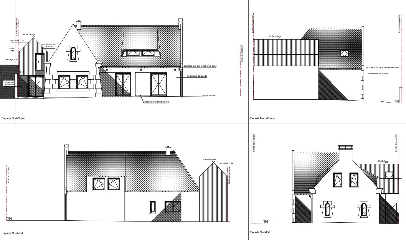 Descriptif technique : L'extension est en maçonnerie traditionnelle avec une charpente en bois. Un parement en bois Douglas vient recouvrir l'isolation faite par l'extérieur.