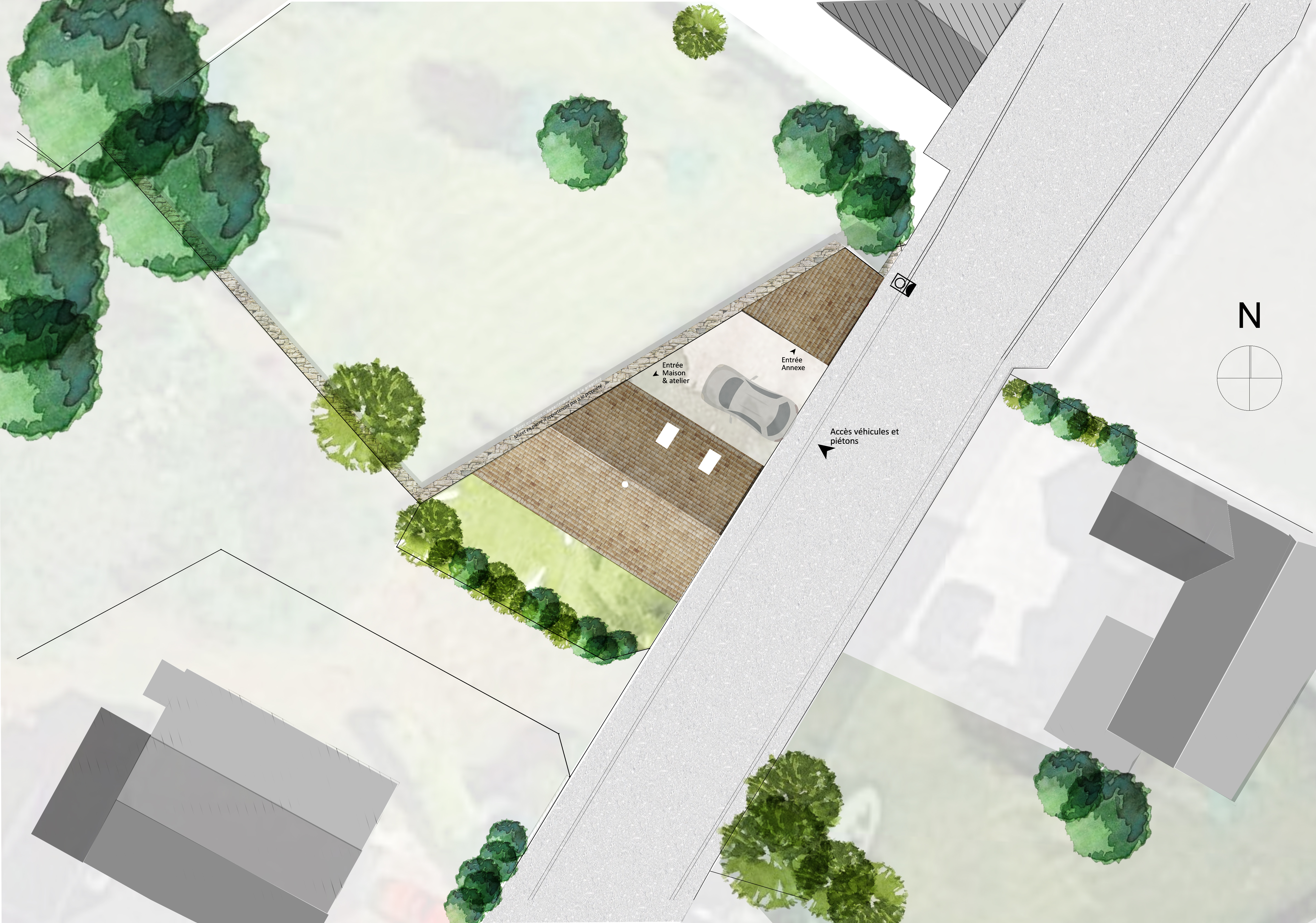 Approche environnementale : L'approche environnementale repose sur le principe de la frugalité, sans signe ostentatoire, sur la simplicité du volume et dans l'idée d'une forte recyclabilité du projet.