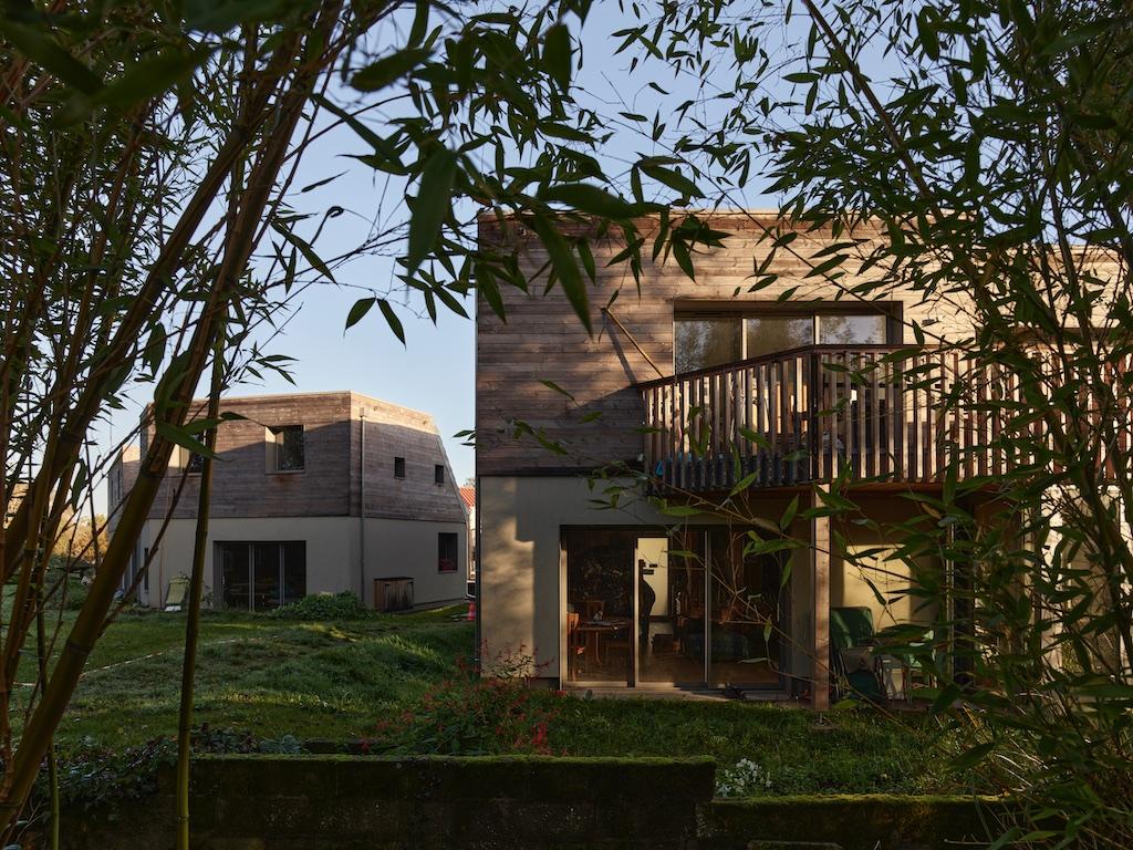 Descriptif technique : - Structure tout 'bois' : plancher, ossature, charpente, bardage - Isolation biosourcée: ouate de cellulose dans l'ossature, fibre de bois extérieur, biofib (lin + chanvre) en doublage, plancher et cloison intermédiaire - Bardage en bois douglas naturel classe 3b purgé d’aubier, et en enduit organique, - Enduit intérieur terre et/ou peinture naturelle (à base de chaux) sans COV - Chauffage par poêle à bois : 6 poêles pour 12 logements -Gestion des eaux pluviales en surface à l'aide de noues plantées. PEFC (Gestion forestière durable) FSC (Gestion forestière responsable) CTB A Traitement des bois en oeuvre CTB Structures NF Vantaux de portes planes NF Fenêtres Bois et Portes Extérieures - Acotherm NF Parquets NF Ameublement