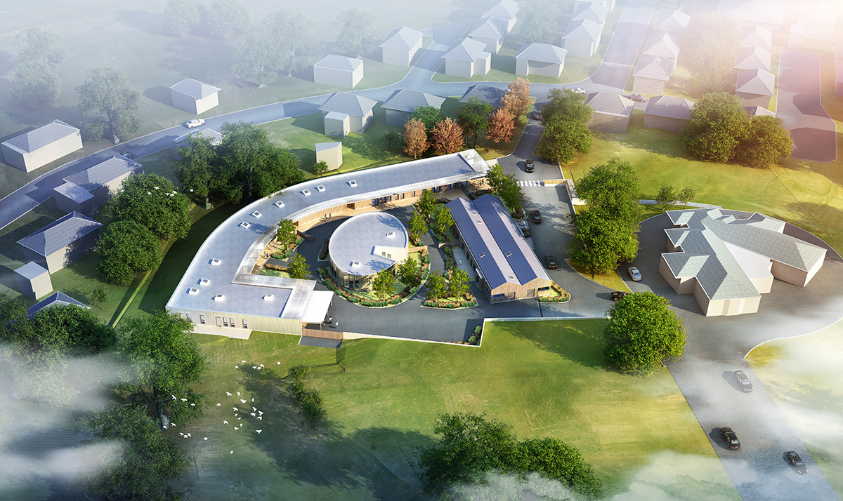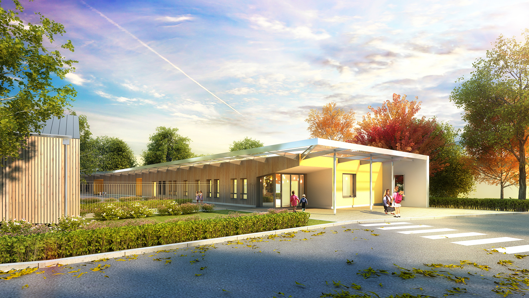 Le projet est conçu comme une école. Il se développe par une succession de bâtiments qui s’organisent autour de cours de récréation. L’organisation s’appuie sur l’ambition de répondre aux enjeux de la qualité d’orientation des façades de sorte que chaque espace en fonction de son usage profite de la meilleure orientation possible. L'identité chaleureuse et rassurante du projet puise sa force dans les formes simples de l'architecture et le choix des bardages, bois, zinc et métallique, qui jouent avec la lumière.