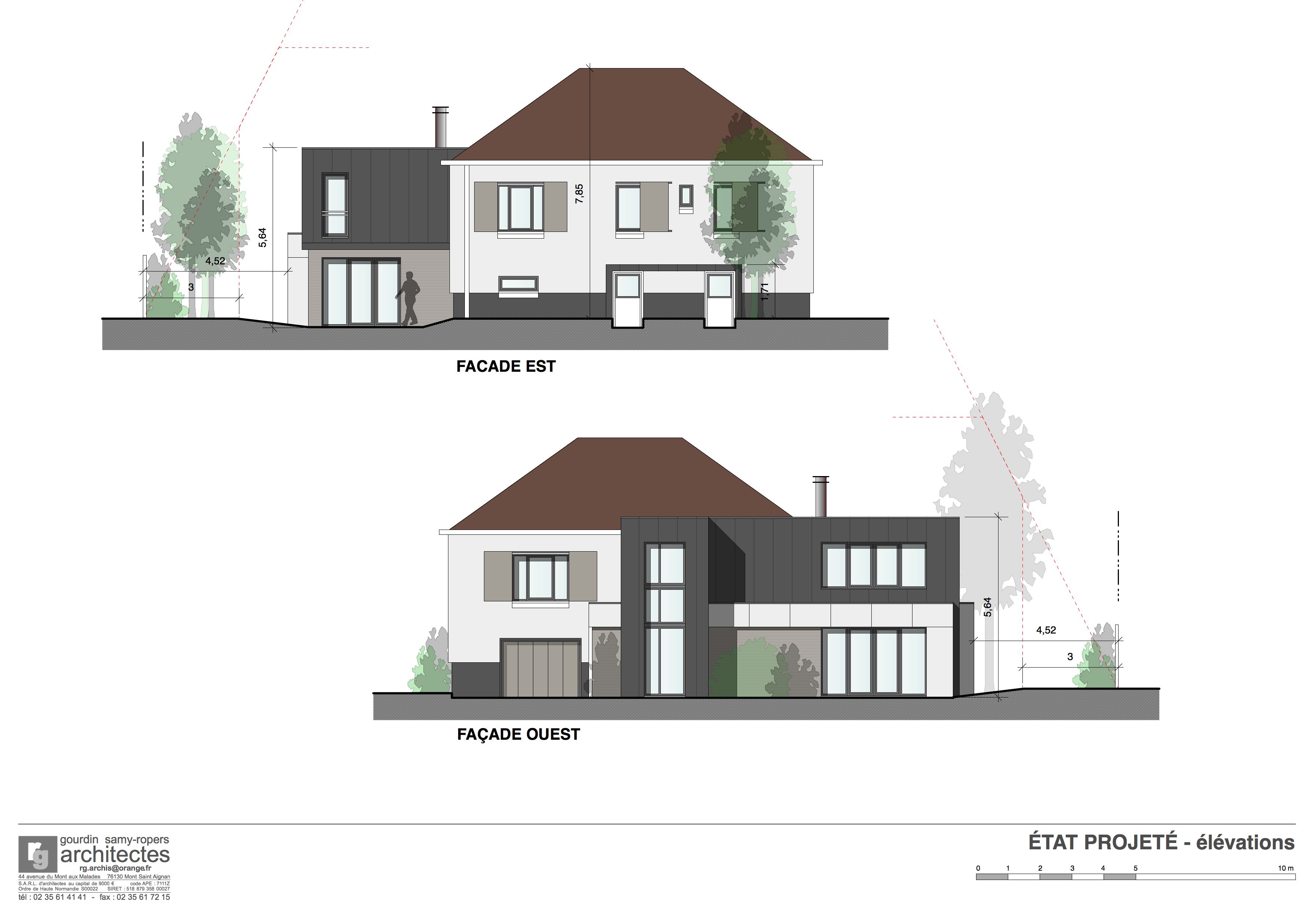 L’extension est visible depuis la rue. Le choix de volumes simples encadre parfaitement bien les volumes existants, sans dégrader son style marqué. L’extension vient se greffer naturellement dans un des angles tout en permettant de conserver toutes les caractéristiques et la composition réfléchie de chacune des façades. Les matériaux choisis viennent compléter simplement l’élégance de la maison tout en se démarquant. L’extension a une écriture architecturale contemporaine. Elle présente des détails de modénature et de mise en œuvre permettant différents niveaux de lecture et de traitement.