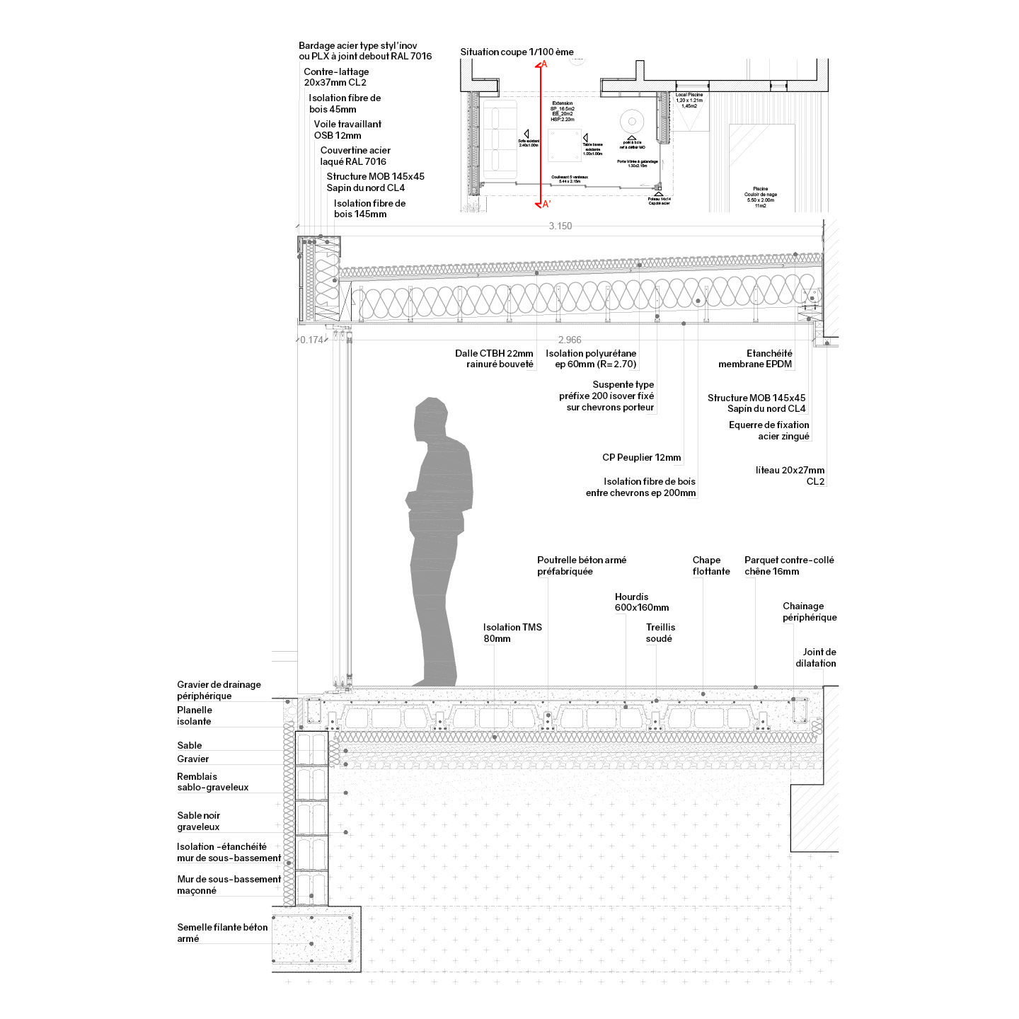 MUGUET NOIR: [Ophiopogon planiscapus] Ce projet d’extension a pour objectif d’agrandir le séjour actuel de cette maison de ville située à Bordeaux. L’ambition est de profiter davantage de l’écrin de verdure offert par le jardin, mais aussi de bénéficier d’un espace qui peut complètement s’ouvrir sur l’extérieur et vers la piscine implantée dans la verdure. À l’intérieur de l’extension, est mise en œuvre un contre- plaqué de peuplier afin d’obtenir un univers chaleureux et convivial.