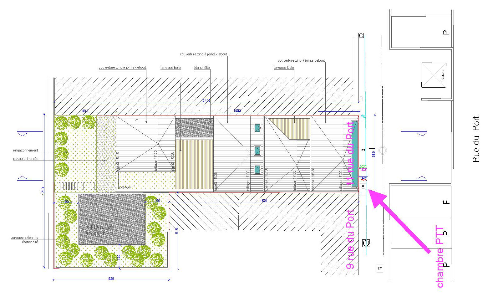 Approche environnementale : Impact environnemental, sonore, optimisé en choisissant de construire en structure bois. Le choix est également motivé, par une préfabrication permettant au chantier d’être le plus court possible, afin de moins déranger les riverains. Travailler dans une dent creuse en densifiant le centre-ville est un acte environnemental (préservation des zones humides de la BRIÈRE en évitant l'étalement urbain). Nous avons choisi des entreprises locales dont la plus éloignée est celle du charpentier (NANTES). Le zinc a été choisi pour une pérennité optimale du couronnement, et un entretien facile.