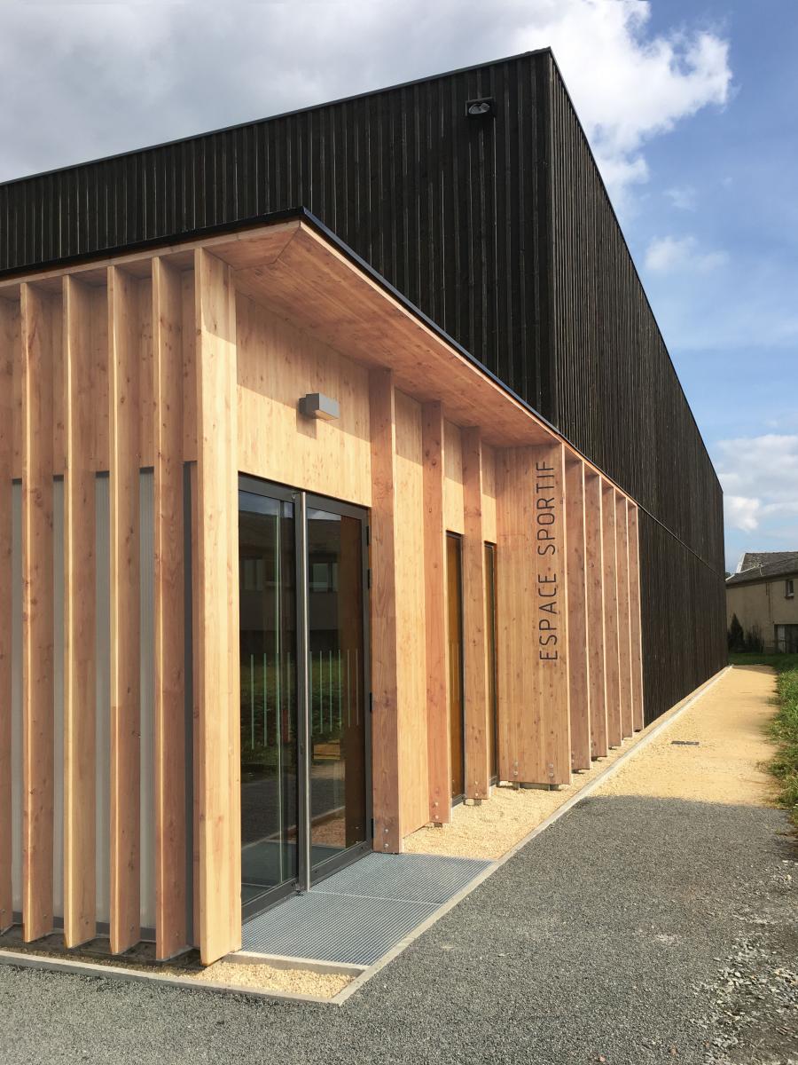 En 2016, nous avons été lauréat pour la conception et le suivi de réalisation de 2 salles de sport. La première est édifiée à Mouliherne et la seconde à Saint Philbert du Peuple. Si les plans fonctionnels des nouveaux ensembles reprennent les espaces volumétriques quadrilatères intérieurs, le traitement architectural affirme l’identité et la singularité du projet dans sa localité. Construit sur la base de volumes simples et épurés, les plans des 2 salles de sports ont été établis avec la même recherche d’unité, d’optimisation fonctionnelle et de pureté de l’enveloppe.