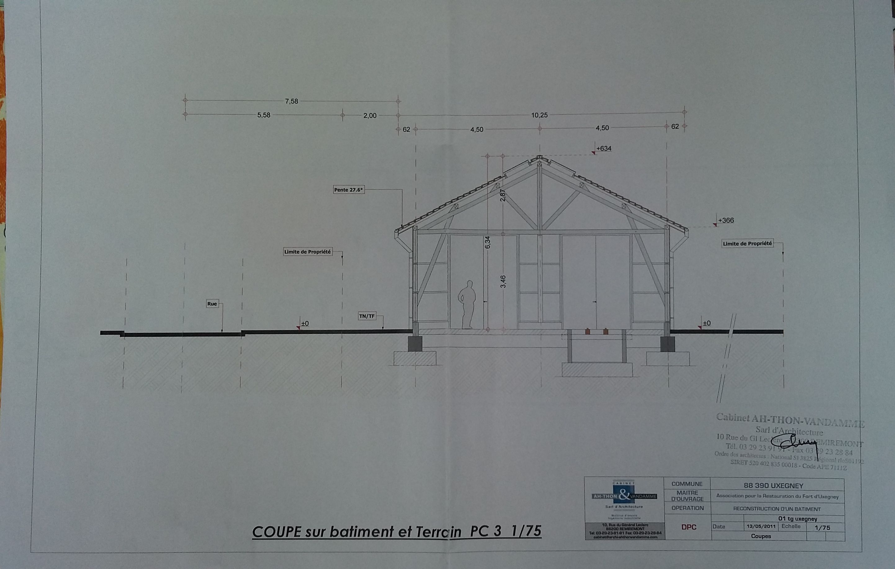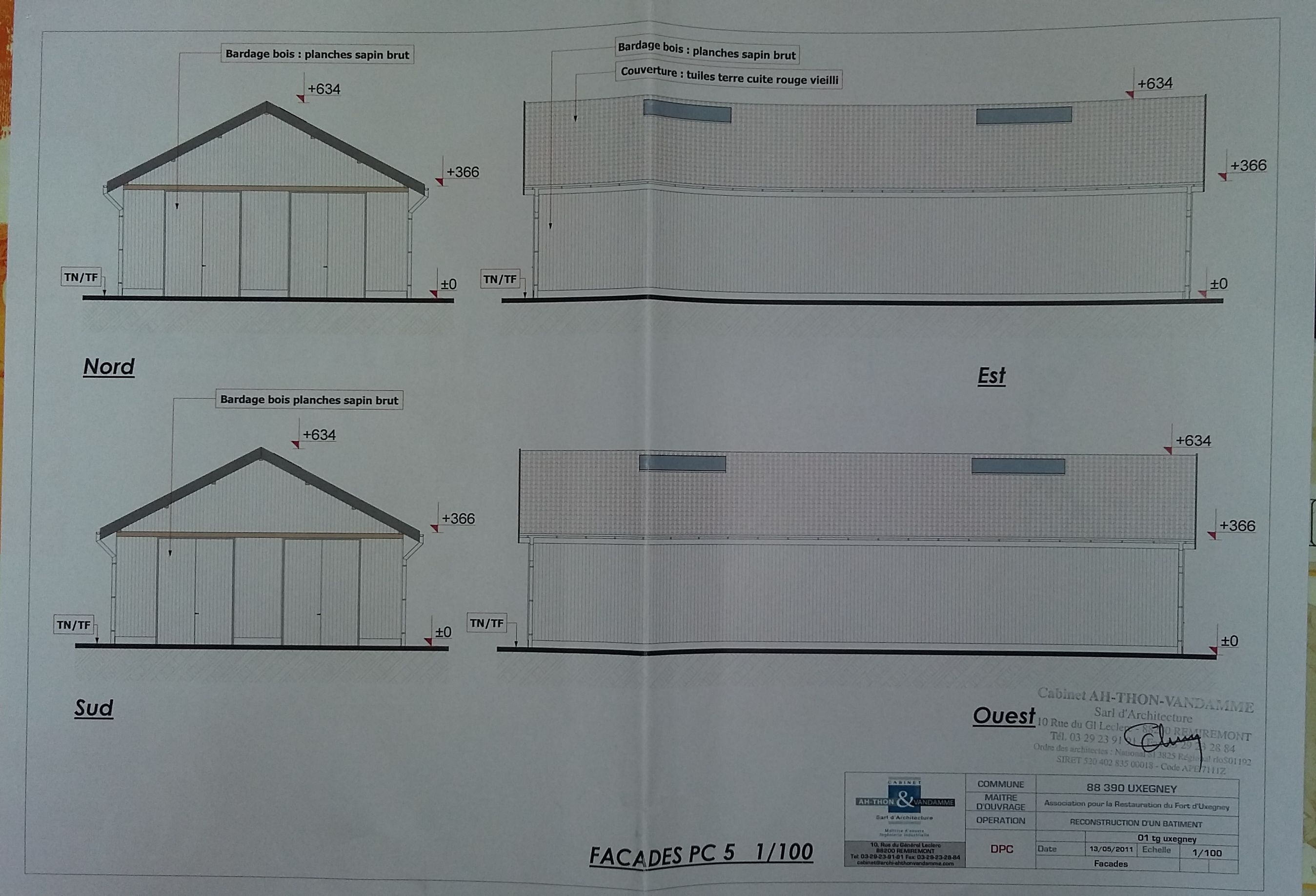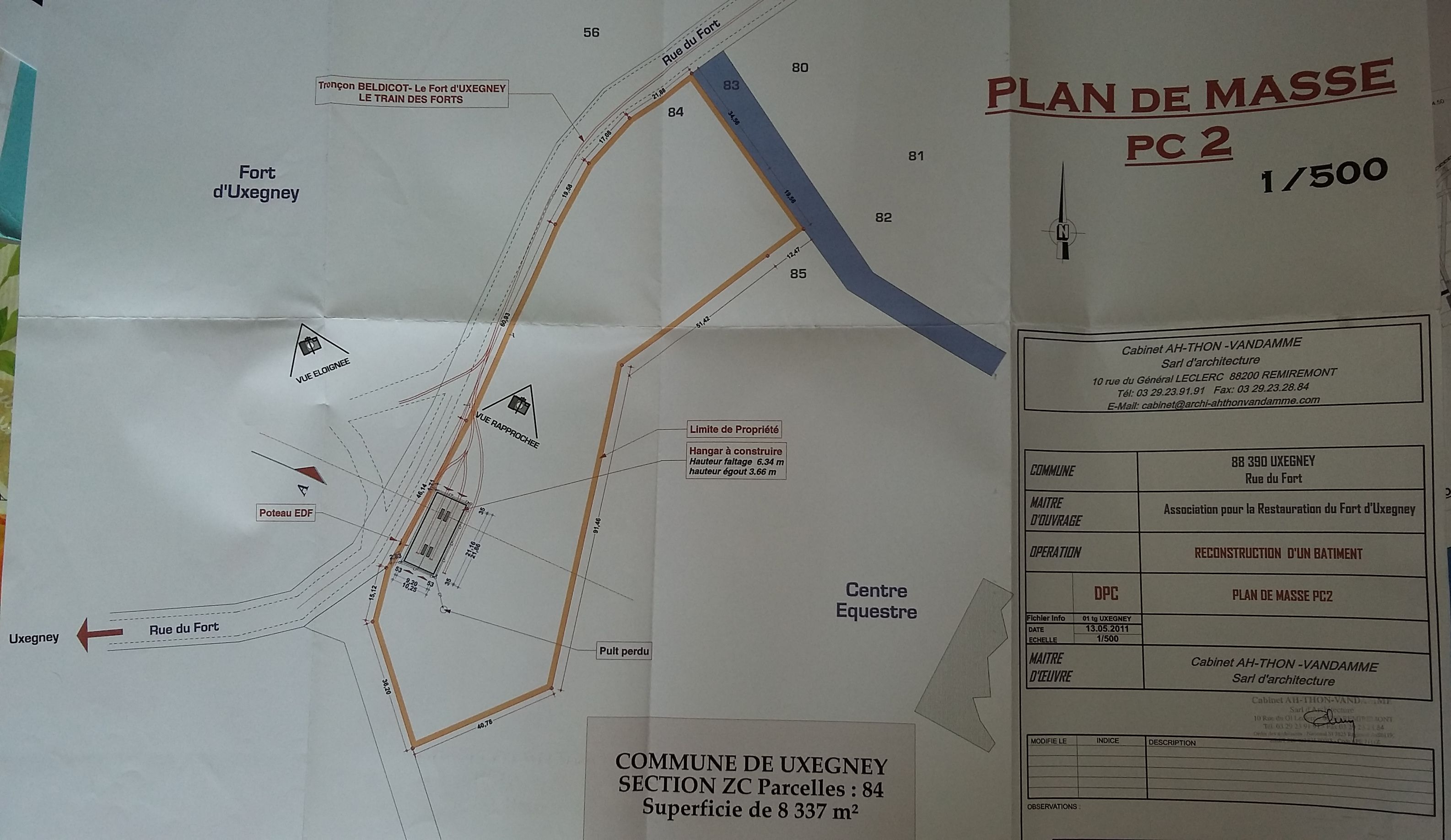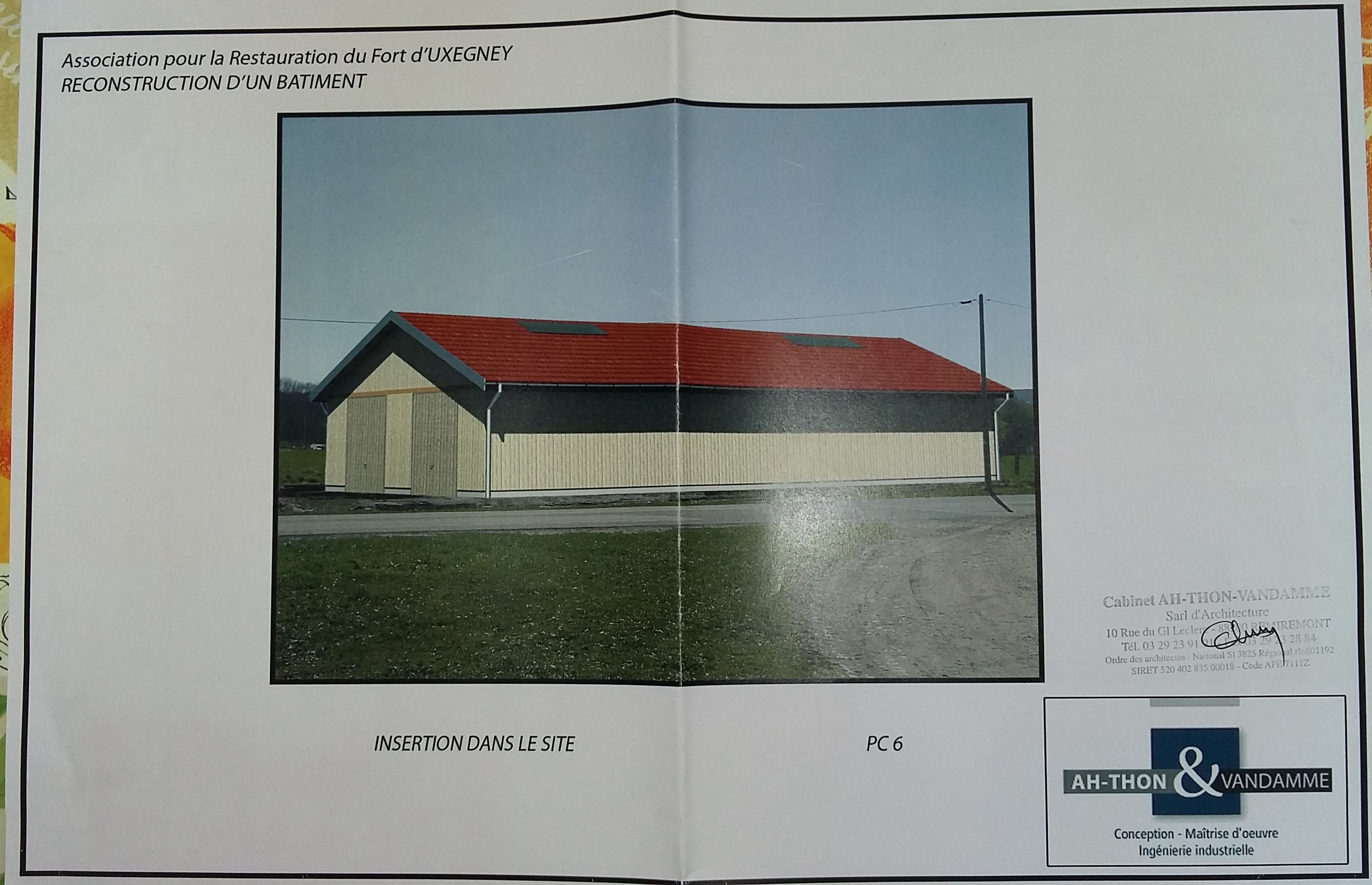 Bâtiment à vocation d'atelier ferroviaire construit à l'emplacement d'un ancien bâtiment militaire démonté au début de la première guerre mondiale, sur les fondations encore visibles. Projet construit le long de la rue des Forts sur la commune d'Uxegney face au Fort d'Uxegney, inscrit à l'Inventaire des Monuments Historiques. Projet réalisé selon les règles de l'art de l'époque avec charpente bois, bardage bois et tuiles en terre cuite après consultation de l'Architecte des Bâtiments de France.