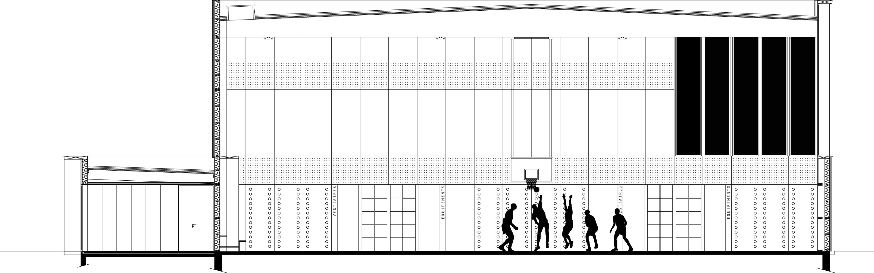 En 2016, nous avons été lauréat pour la conception et le suivi de réalisation de 2 salles de sport. La première est édifiée à Mouliherne et la seconde à Saint Philbert du Peuple. Si les plans fonctionnels des nouveaux ensembles reprennent les espaces volumétriques quadrilatères intérieurs, le traitement architectural affirme l'identité et la singularité du projet dans sa localité. Construit sur la base de volumes simples et épurés, les plans des 2 salles de sports ont été établi avec la même recherche d'unité, d'optimisation fonctionnelle et de pureté de l'enveloppe.