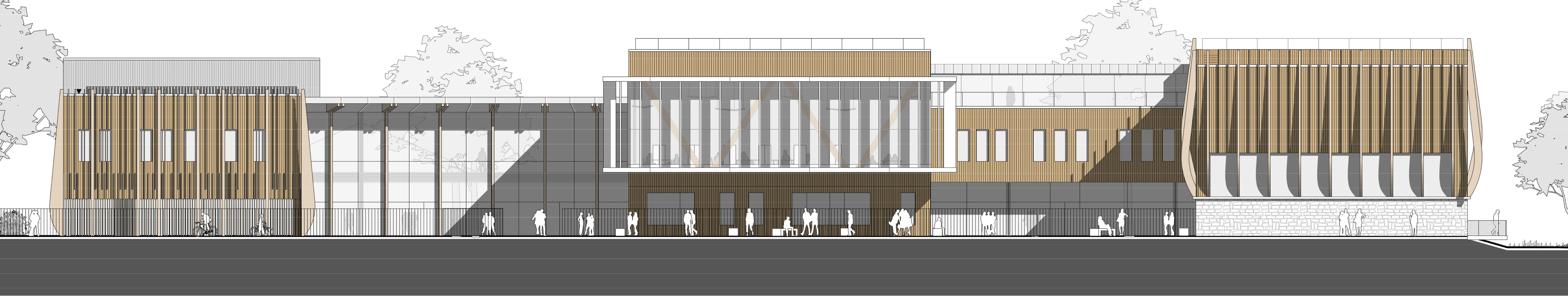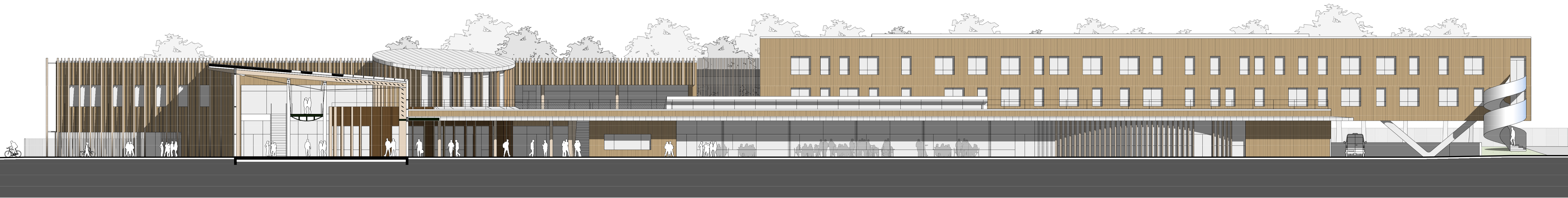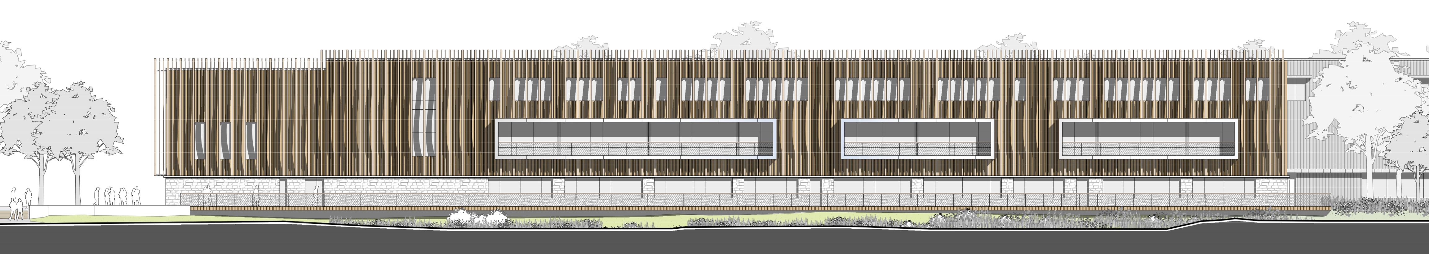 Approche environnementale : Le lycée de Saint-Gilles-Croix-de-Vie est conçu comme un bâtiment frugal au service d’une forte ambition environnementale. Certifié NF HQE Excellent, il est également labellisé bâtiment bio-sourcé, Effinergie+ et E3C1. Au-delà des labels, nous avons visé une grande simplicité dans le fonctionnement comme dans l’entretien et la maintenance. L’enveloppe particulièrement performante, les modes constructifs et les matériaux choisis œuvrent à la fois à la sobriété énergétique, à la réduction des émissions de gaz à effet de serre et à la valorisation du biosourcé.