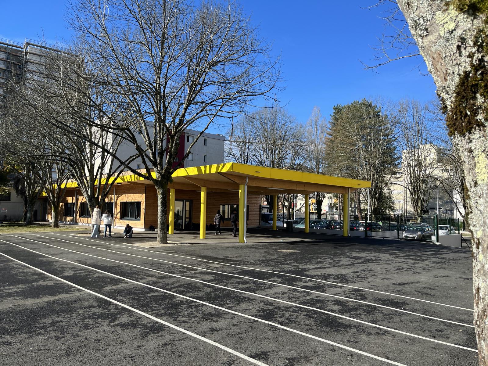 La réhabilitation de l'école des Fleurs, construite en 1967, traite la totalité de l'enveloppe existante avec une isolation des parois et le remplacement des menuiseries. Des brise-soleil orientables sont posés pour le confort d'été. La distribution intérieure est revue. Trois extensions neuves abritent des locaux mutualisés entre l'école, la MJC, et des associations de quartier ; la cantine du groupe scolaire et un bloc escalier-ascenseur qui assure l’accessibilité du projet. Ces volumes s'intègrent au contexte bâti par l'utilisation de la couleur et d'une architecture contemporaine.