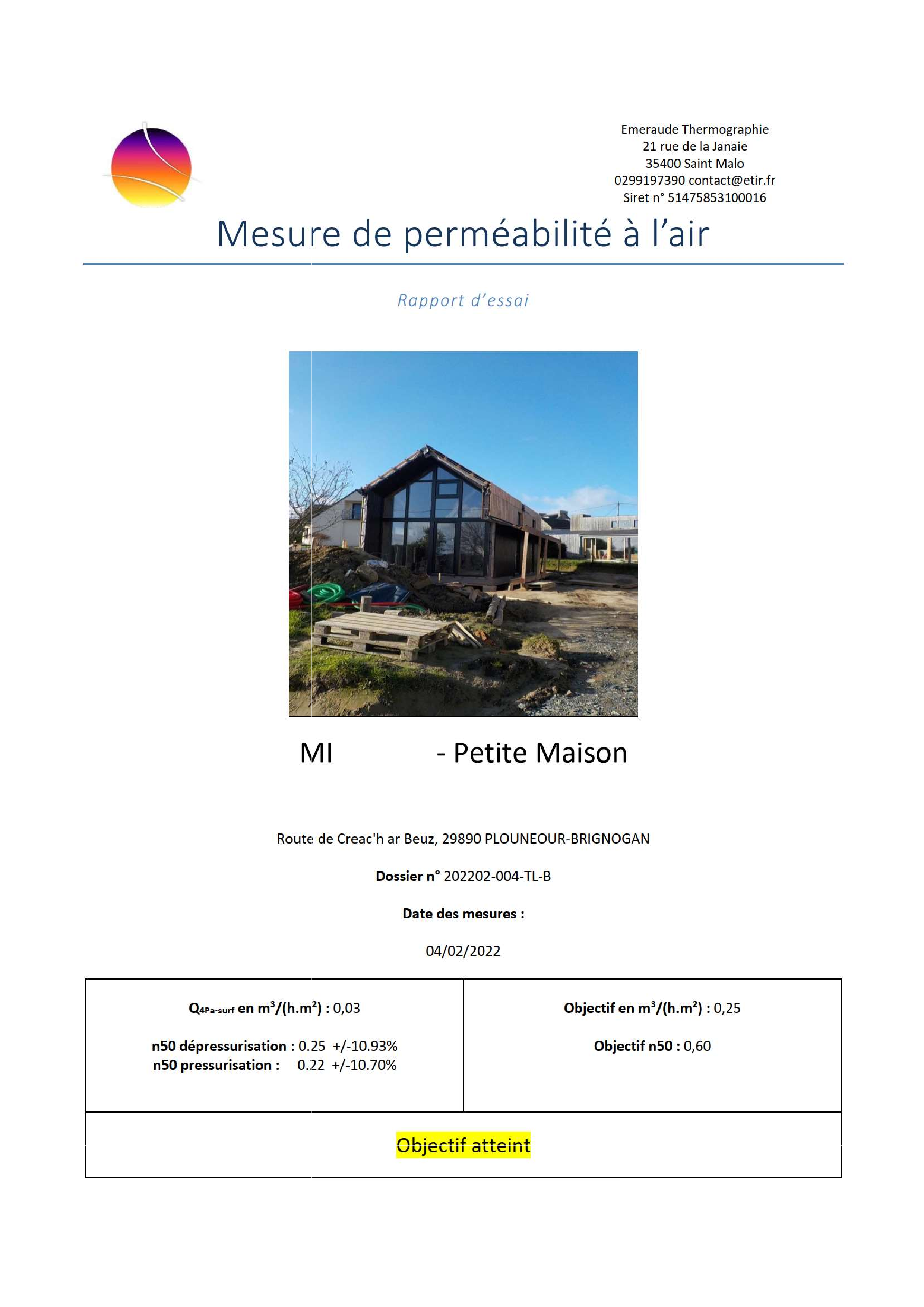 Descriptif technique : Dotées d'une enveloppe bio-sourcée très performante thermiquement ( isolée et étanche à l'air: n50<0,25vol/h au test intermédiaire), les maisons disposent de VMC DF au rendement élevé et de récupérateur de chaleur sur eaux usées (O'BOX). Pour l'eau chaude sanitaire la Wood&White Box est équipée d'un CESI "low-tech" à thermosiphon, la Woos&Black Box d'un petit ballon thermodynamique. Pour le chauffage de l'air, les très faibles besoins seront satisfait par des panneaux rayonnants électriques dans le séjour (vitrages chauffant P=1000W). L' étude RE2020 ( BET ANHEOL Energies) démontre la conformité aux exigences thermiques et environnementales de ces petites maisons passives bio-sourcées avec chauffage de l'air électrique, dans le Finistère. W&WB: Cep=46.5\ Ic=58.37_W&BB: Cep=69.9\ Ic=84.71