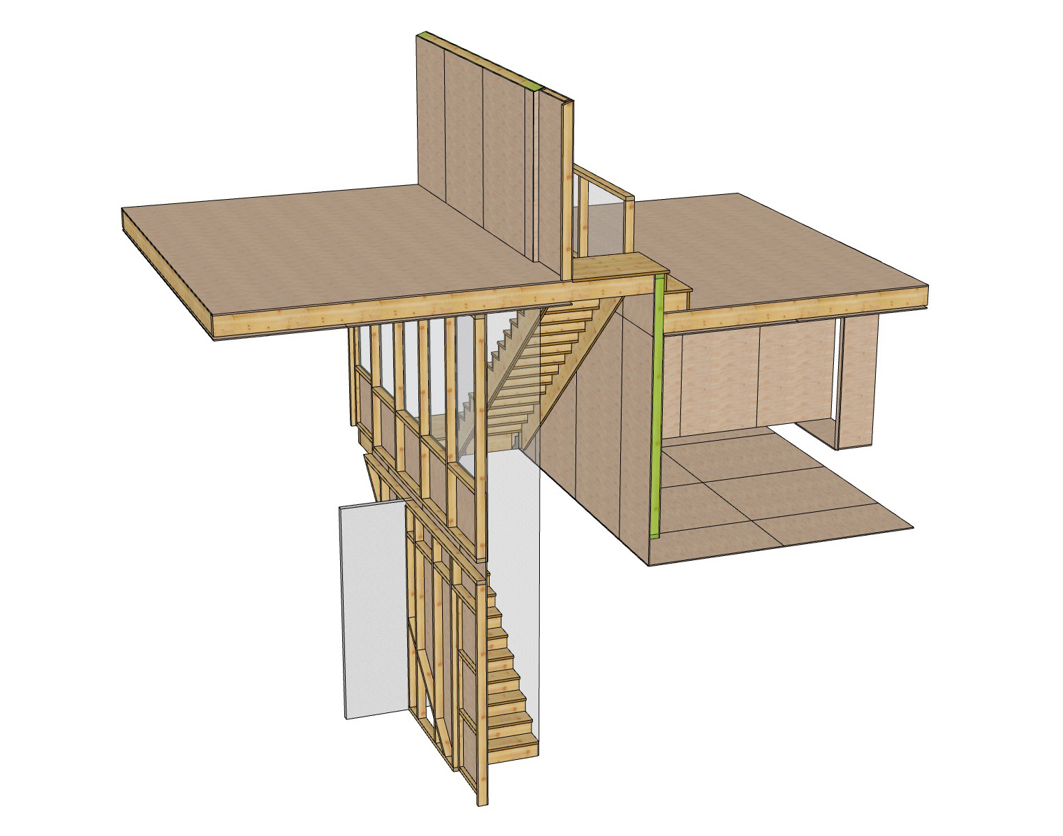 Sur une parcelle étroite, la maison existante est petite et peu fonctionnelle. L’objectif est d’augmenter la surface habitable dans les limites du volume existant. En procédant par petites touches indépendantes les unes des autres, le tableau d’une nouvelle habitation en bois est dessiné, en paliers et demi-niveaux en charpente bois, véranda et serre légère en ossature bois et espaces intermédiaires en contreplaqué entre intérieur et extérieur en aménagement bois.