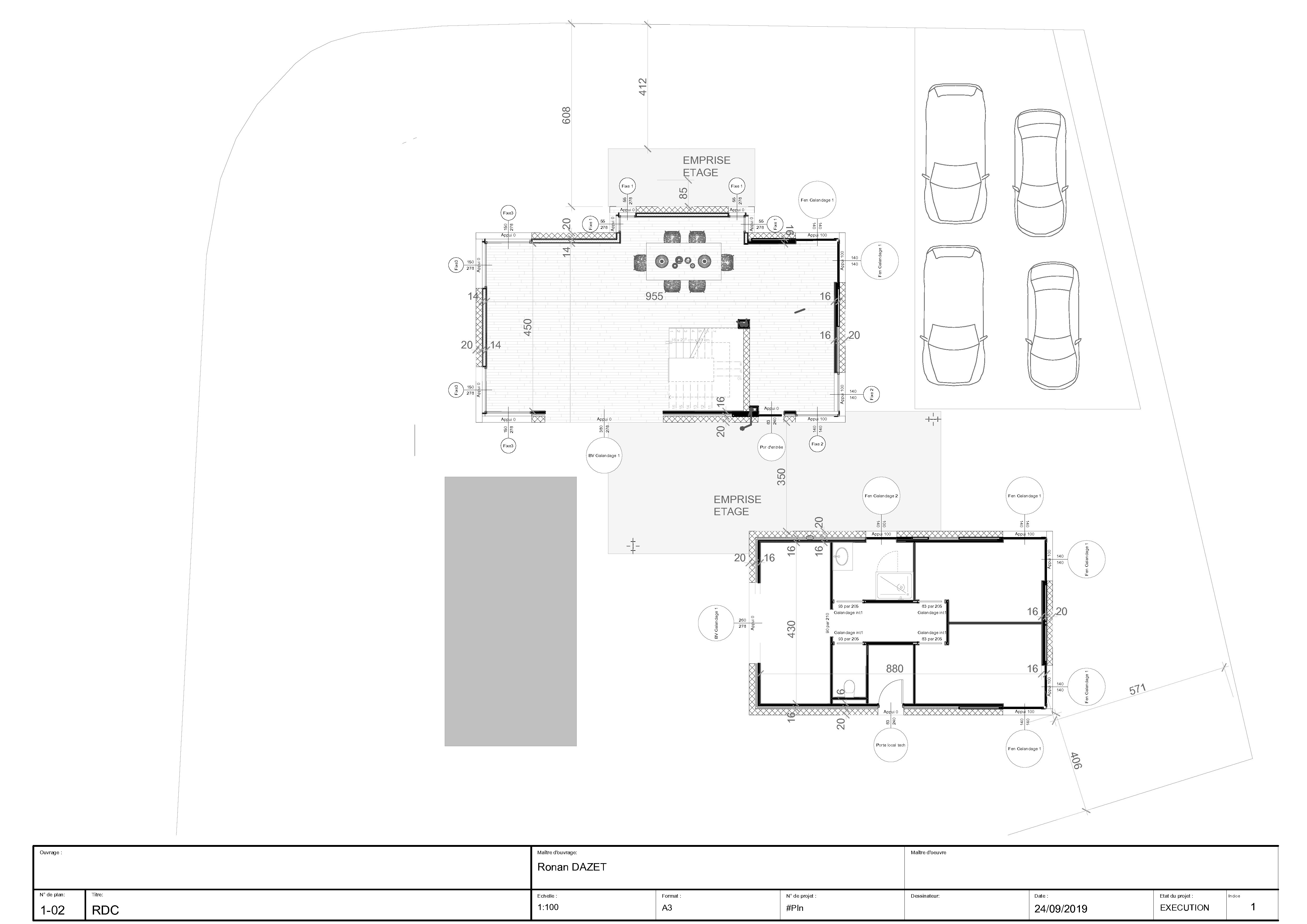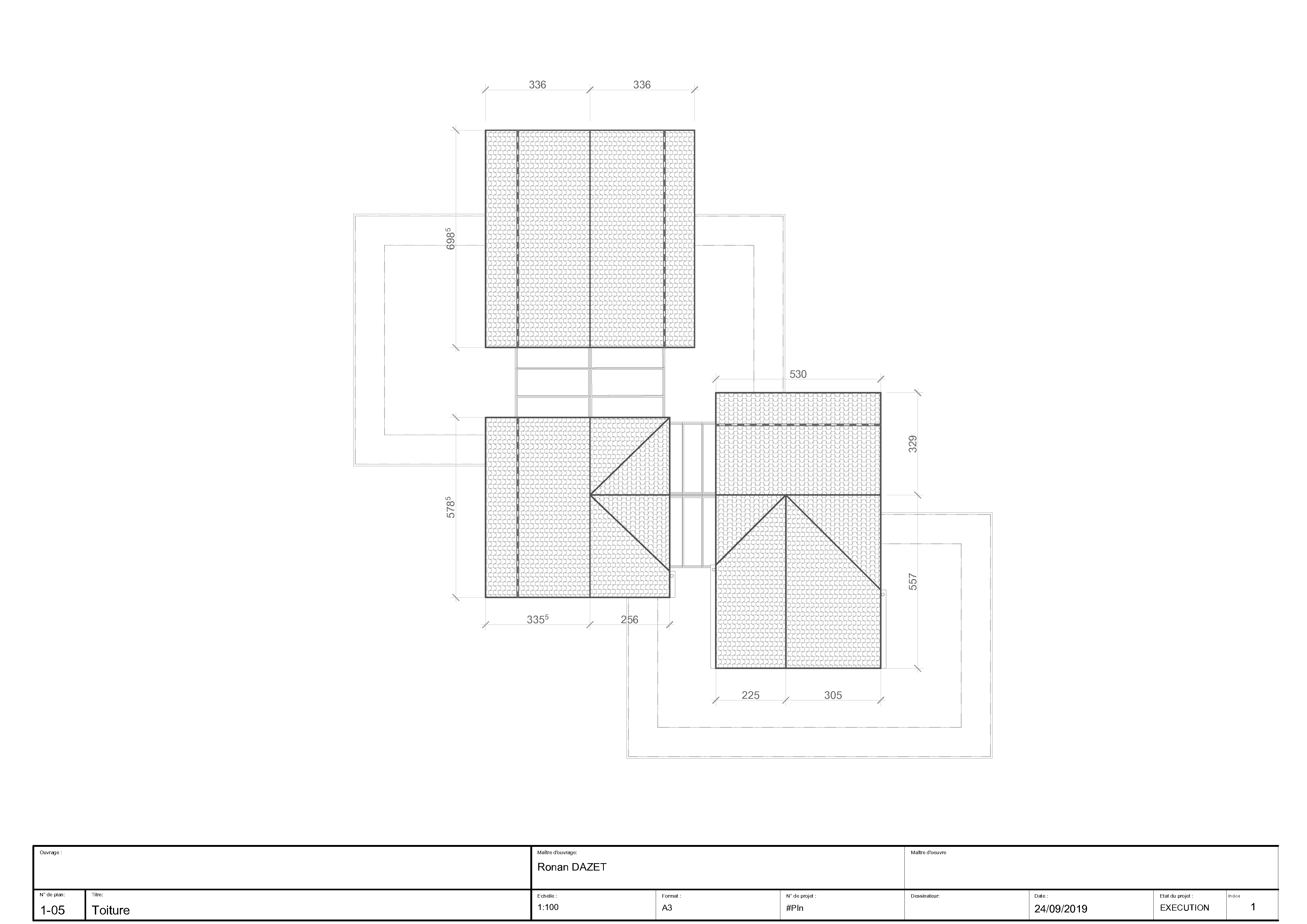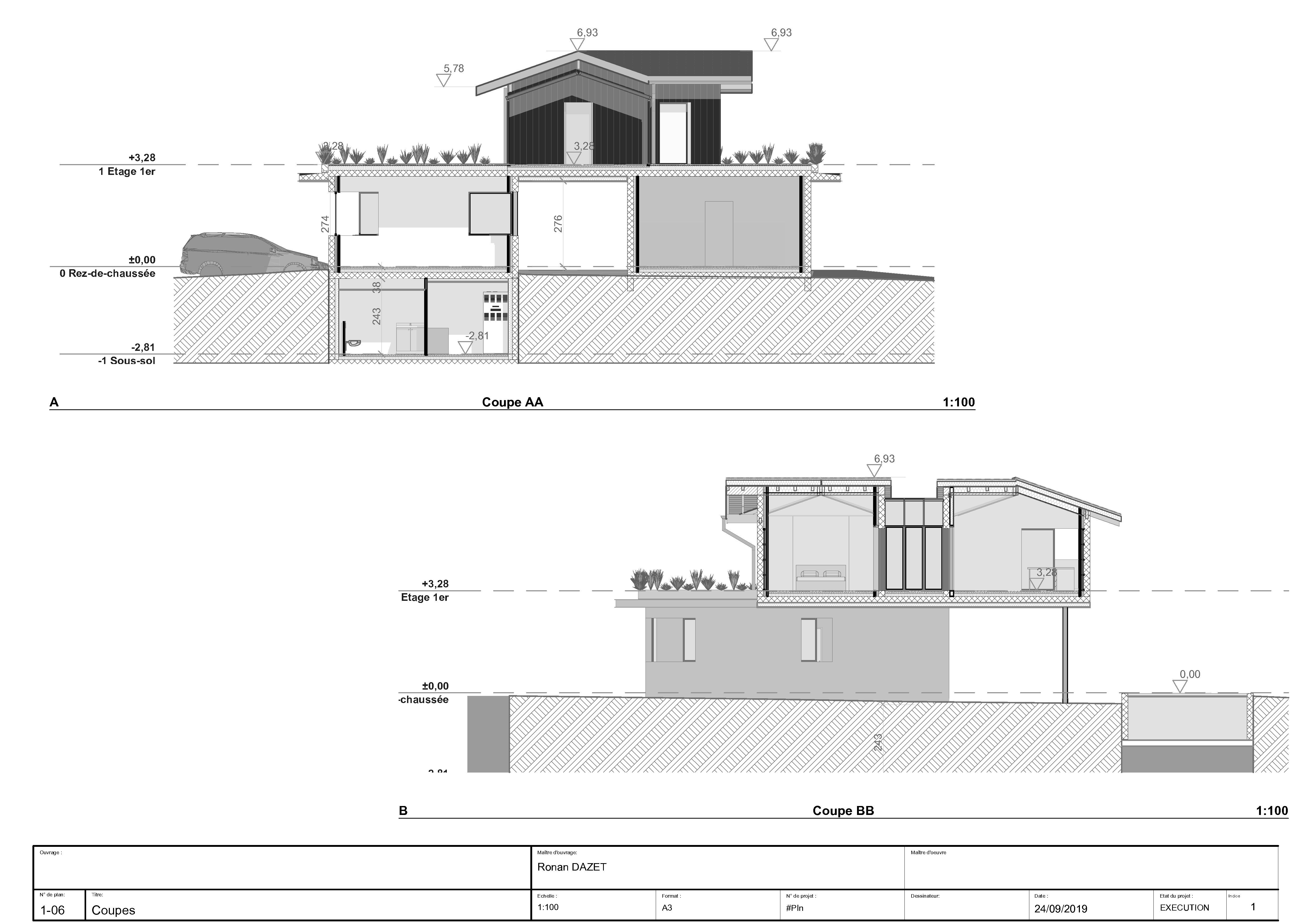 Le projet est une maison pour un jeune chef d'entreprise accueillant sa mère. Il a fallu, dans un contexte règlementaire local contraignant, imaginer un lieu liant des espaces à la fois d’intimité, de développement personnel mais également des lieux du vivre ensemble. Outre le fort enjeu d'insertion paysagère, nous avons dû imaginer une maison permettant la cohabitation intergénérationnelle, aux espaces flexibles et adaptables. Le rez de chaussée est un socle contemporain, surmonté de 3 volumes comme des cabanes perchées, articulés par des verrières permettant respirations et cadrages de vue