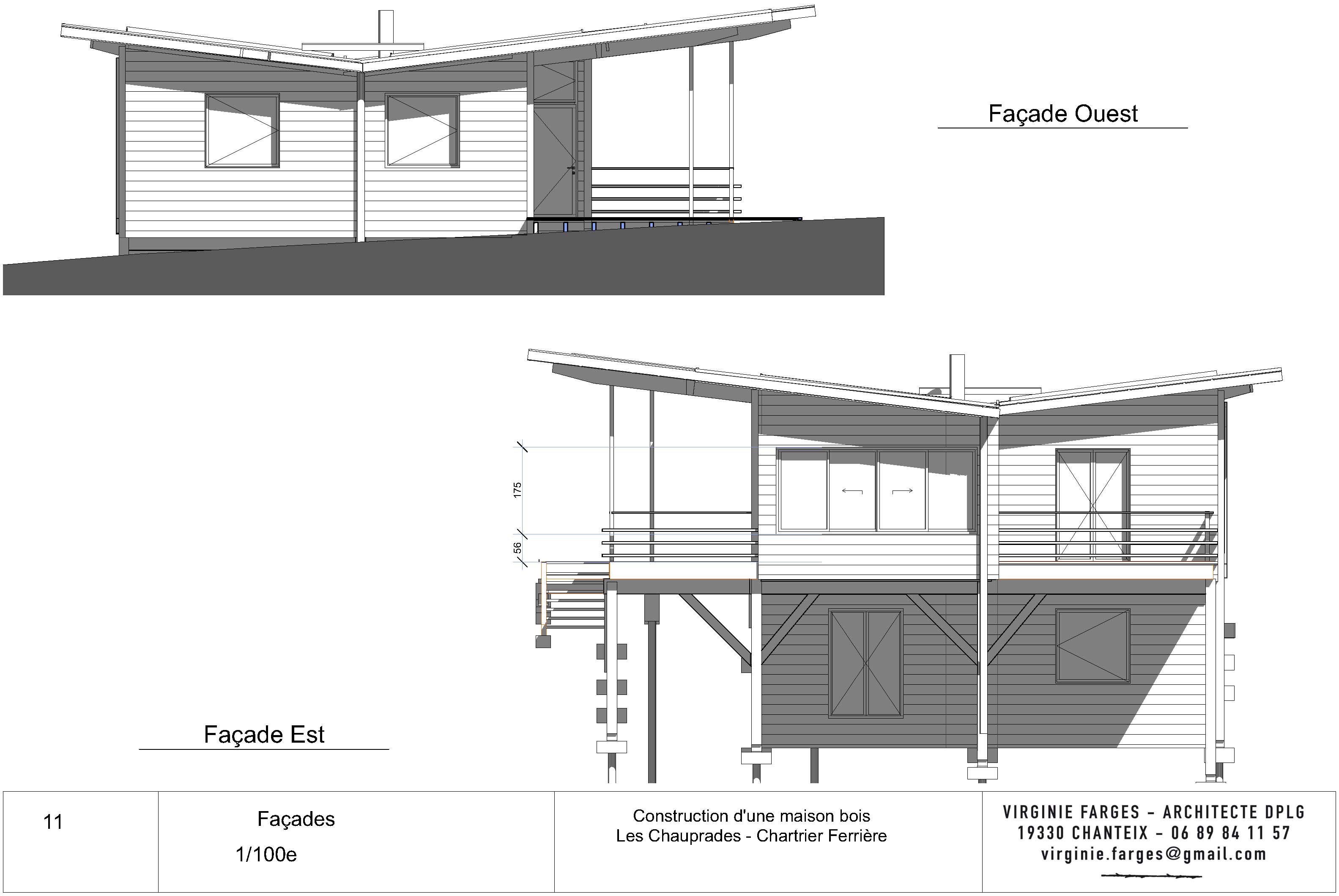 Descriptif technique : De grands poteaux moisés posés sur une trame régulière partent du terrain et s'élancent à travers la maison pour soutenir des arbalétriers renversés, débordant largement de la maison pour soutenir les débords de toiture et les auvents. Sur la façade sud, les menuiseries s'installent entre les poteaux, des pans en ossature bois remplissent les autres espaces. Un toit végétalisé recouvre la maison favorisant le confort d'été.