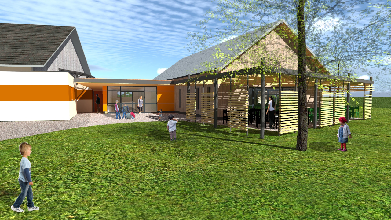 La conception architecturale, permet la recherche du meilleur compromis entre l’architecture, les fonctionnements internes, le confort des occupants, l’ergonomie des espaces, les performances énergétiques, les rapports d’organisation avec l’extérieur et l’insertion dans le site. Le parti pris était à la fois de s'ouvrir vers la cour d'école tout en maintenant une liaison avec le bâtiment existant depuis le passage couvert (passage abrité des élèves pour le déjeuner.) L'orientation du bâti permet ainsi de privilégier aussi les accès techniques à l'arrière du bâtiment et vers le parking.
