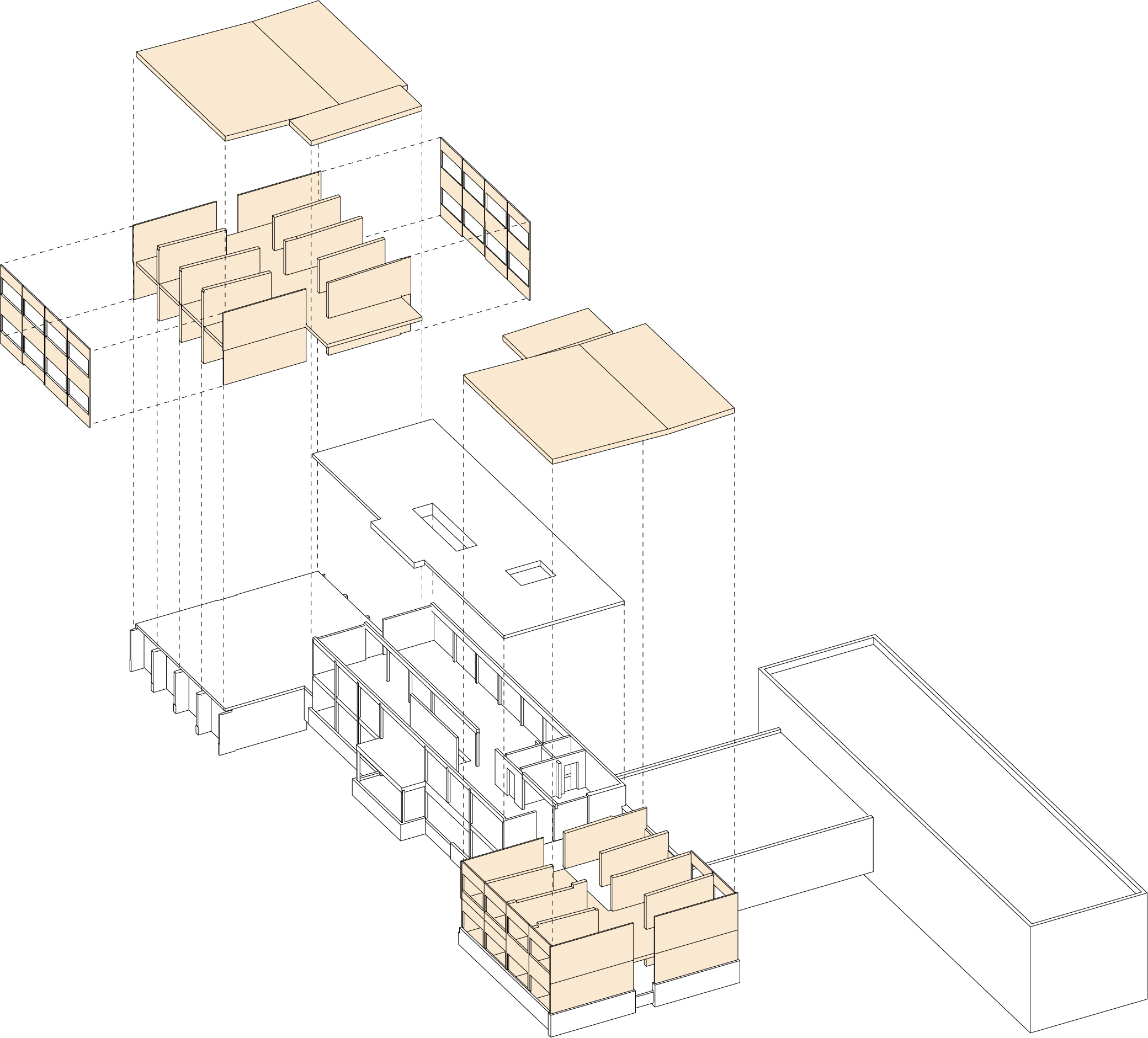 Le projet de Foyer d'Accueil médicalisé consiste à revaloriser une architecture hospitalière de pavillons dans un beau parc arboré. L'organisation intérieure propose des espaces communs pour la prise en charge des patients : salles d'activités et pôle de soins qui donnent sur le jardin. Les extensions en bois accueillent les chambres desservies par des circulations ouvertes sur l'extérieur qui permettent des déambulations variées. Des espaces transitionnels vitrés entre les lieux de vie collectifs et les chambres individuelles, donnent accès au parc de l'hôpital.