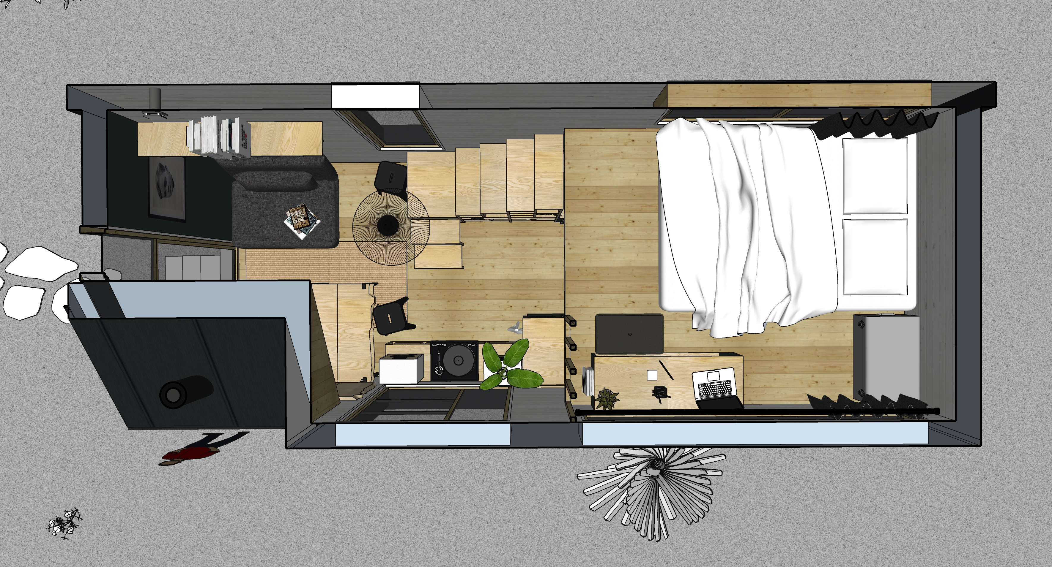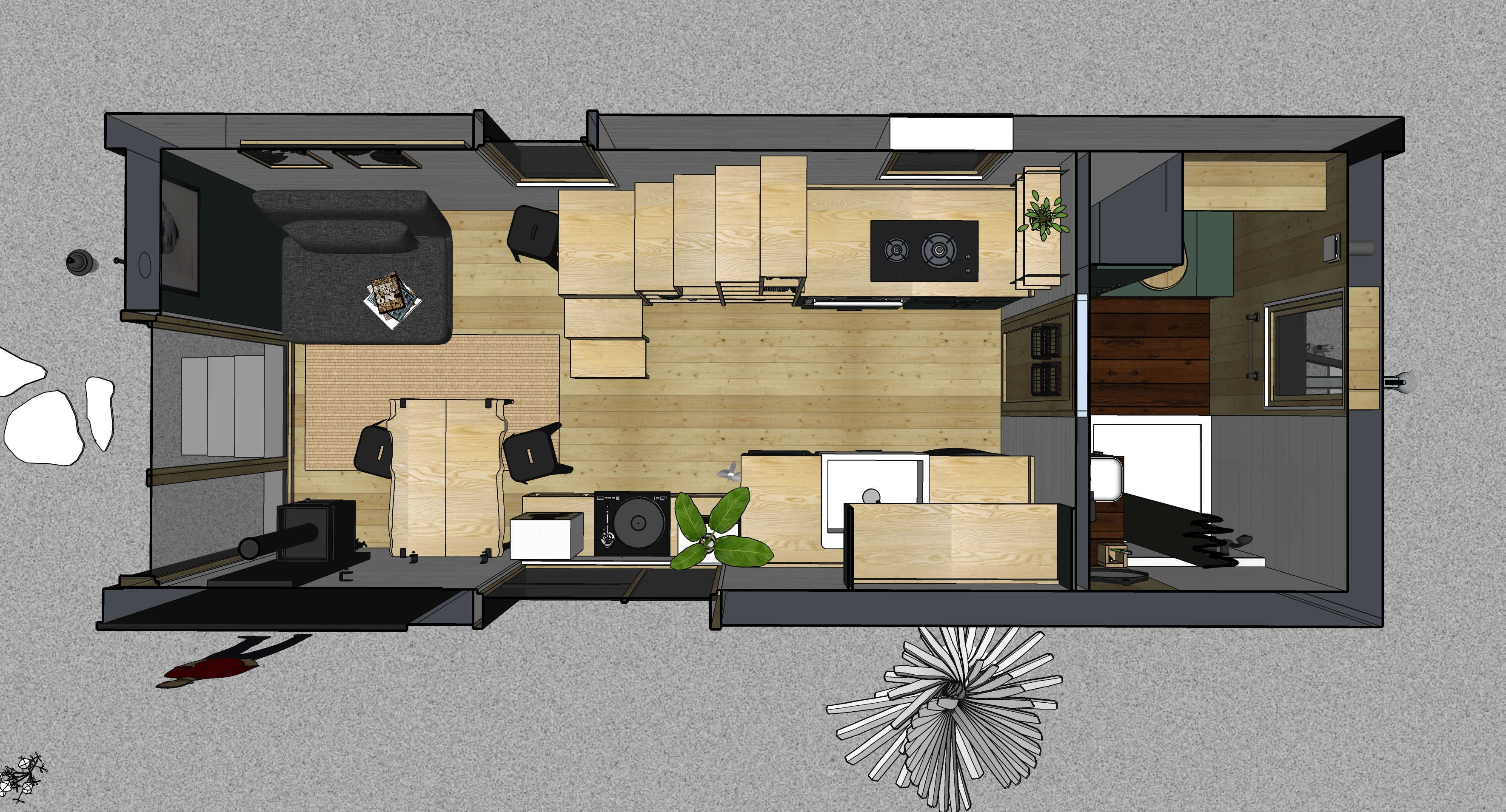 La Tiny house Sauvage est une réalisation sur mesure dont nous avons entièrement assuré la conception (design/plans techniques) et la fabrication. Son bardage combinant bois et aluminium, ses grandes fenêtres asymétriques et son faîtage décentré lui confèrent une architecture résolument contemporaine. A l'intérieur, le bois de frêne est valorisé au travers de meubles sur mesure aux finitions soignées. Une attention toute particulière a été fournie par notre équipe pour proposer une maison qui soit à la fois fonctionnelle, respectueuse de l'environnement, esthétique, confortable et durable.