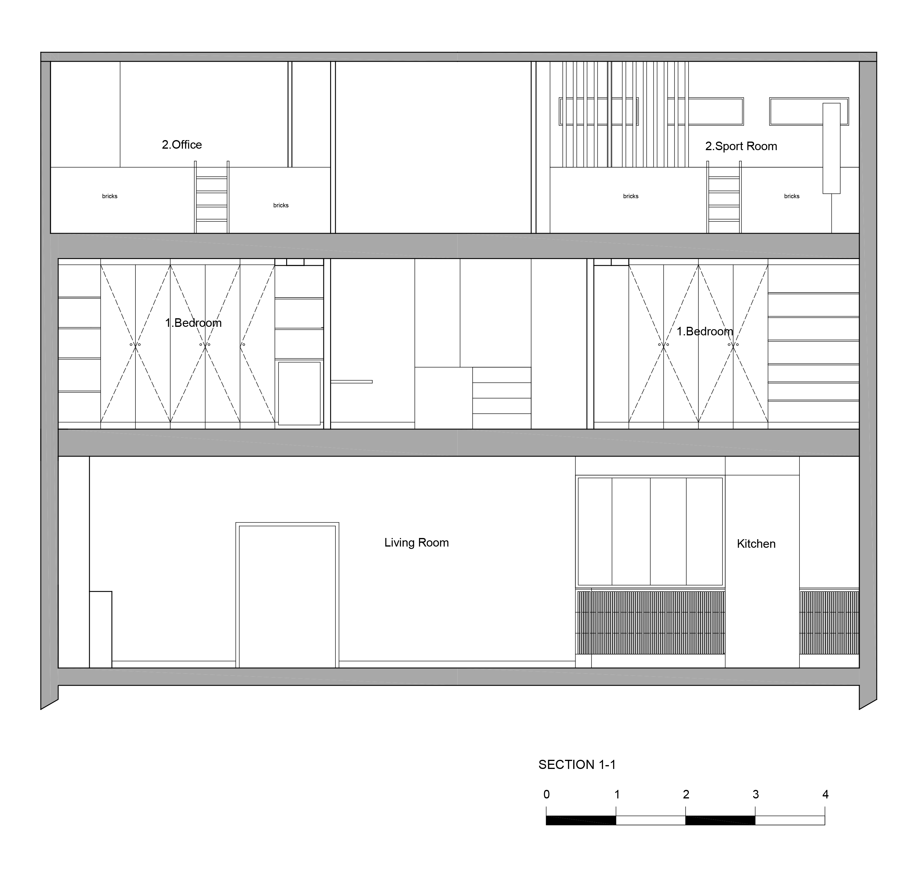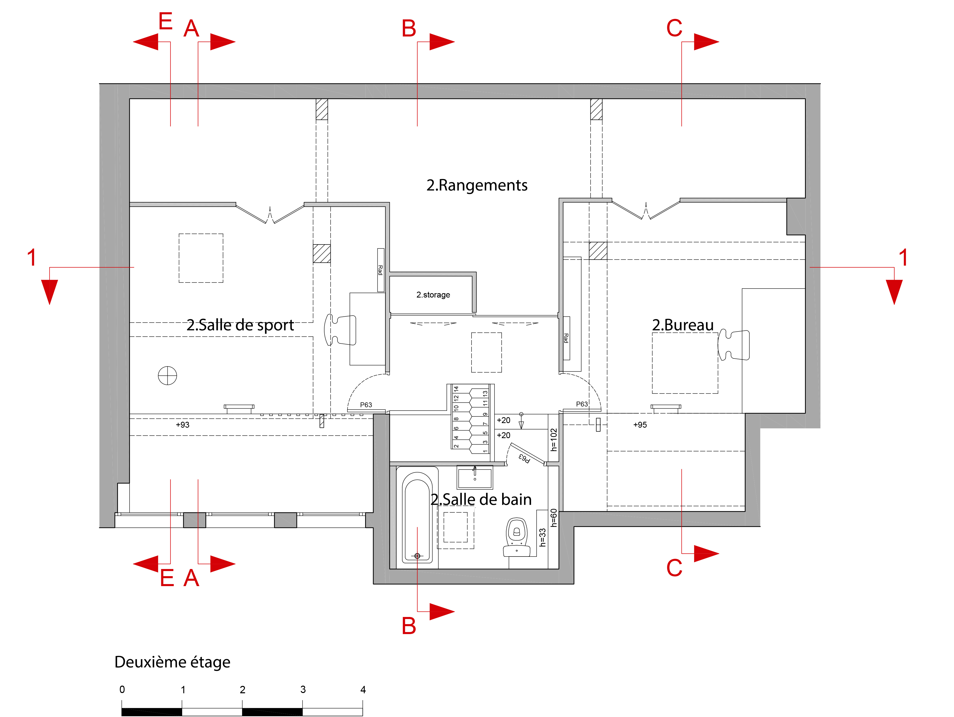 Descriptif technique de l'aménagement : Notre première préoccupation a été de revoir intégralement la répartition des espaces et leurs organisations afin de les adapter aux besoins des nouveaux propriétaires et de pouvoir évoluer avec eux. L’objectif a été ensuite de conserver et de mettre en valeur la lumière devenue traversante après démolition. La double hauteur du séjour, le revêtement de sol en chêne clair mais aussi les jeux de transparence à travers les gardes corps en chêne vitrés créent un lien entre les différentes pièces dans l’ensemble de l’appartement.