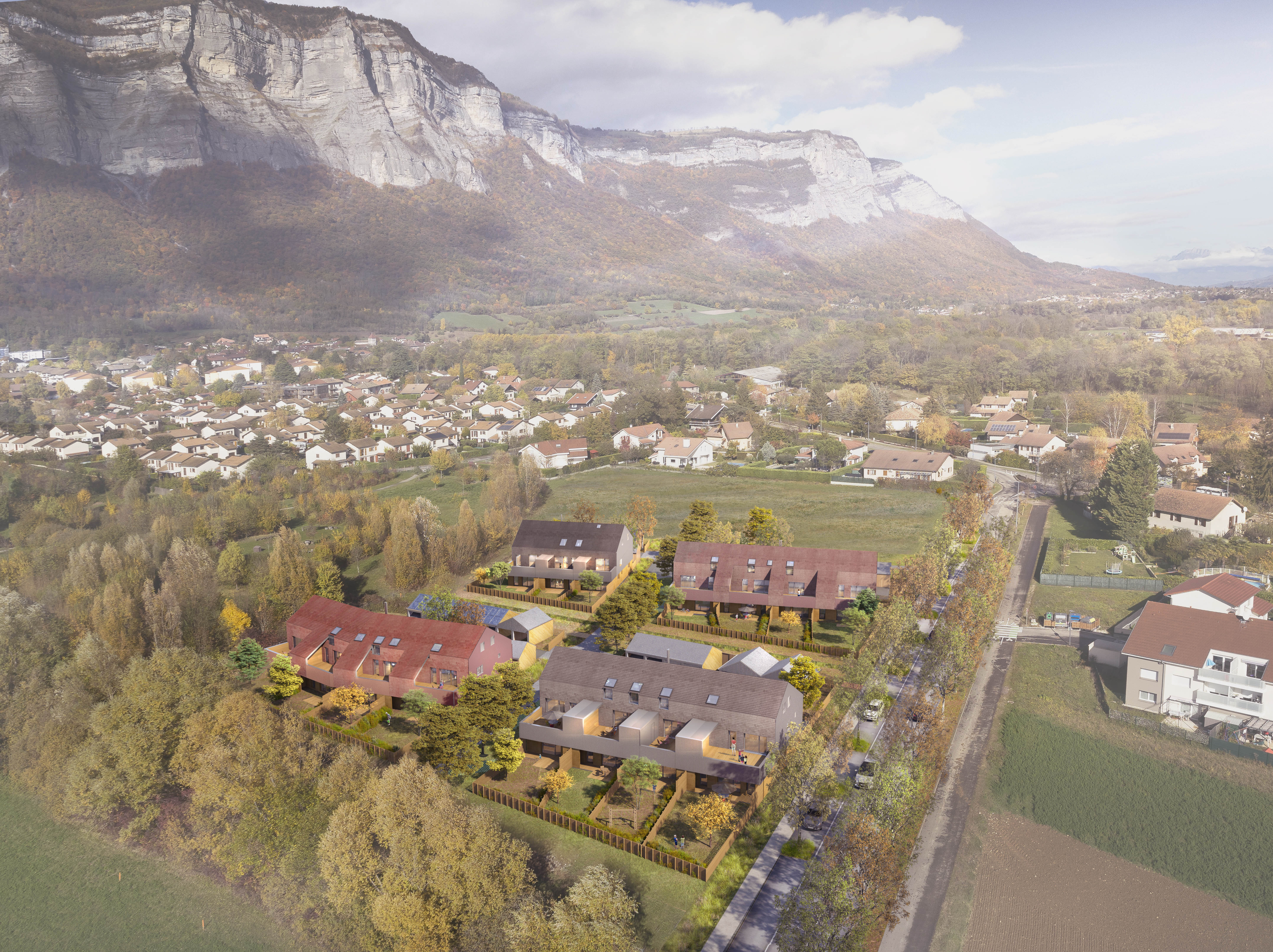 Le projet regroupe 30 logements répartis sur 4 bâtiments sur 4 parcelles dans un écoquartier. La conception architecturale a été accompagnées de 6 ateliers participatifs avec les futurs habitants relogés par le bailleur. Les logements disposent de grandes terrasses ou jardins privatifs en prolongement Sud des séjours. La variété des matériaux et des couleurs singularise chaque bâtiment, dont les socles maçonnés sont enduits et les étages ossature bois sont bardés de tuiles terre cuite et d'ondes métalliques. Les garages et locaux vélos en bois composent avec les logements des cours partagées.