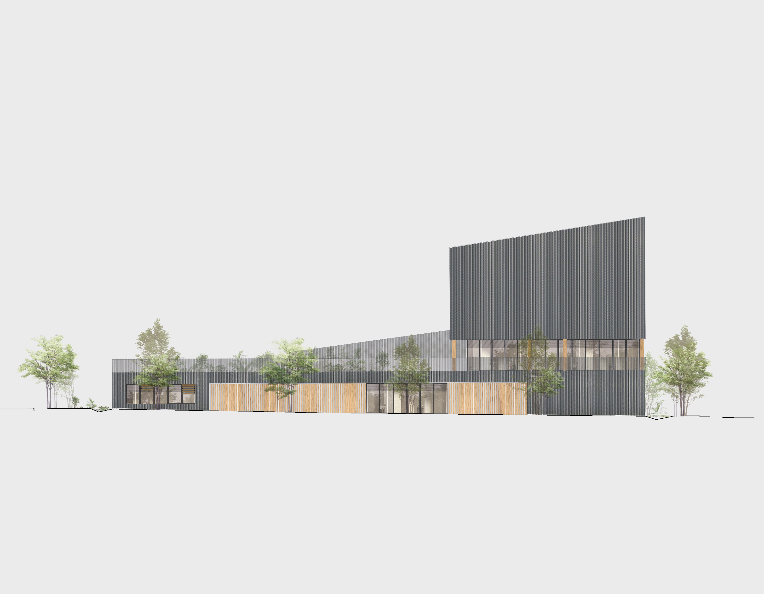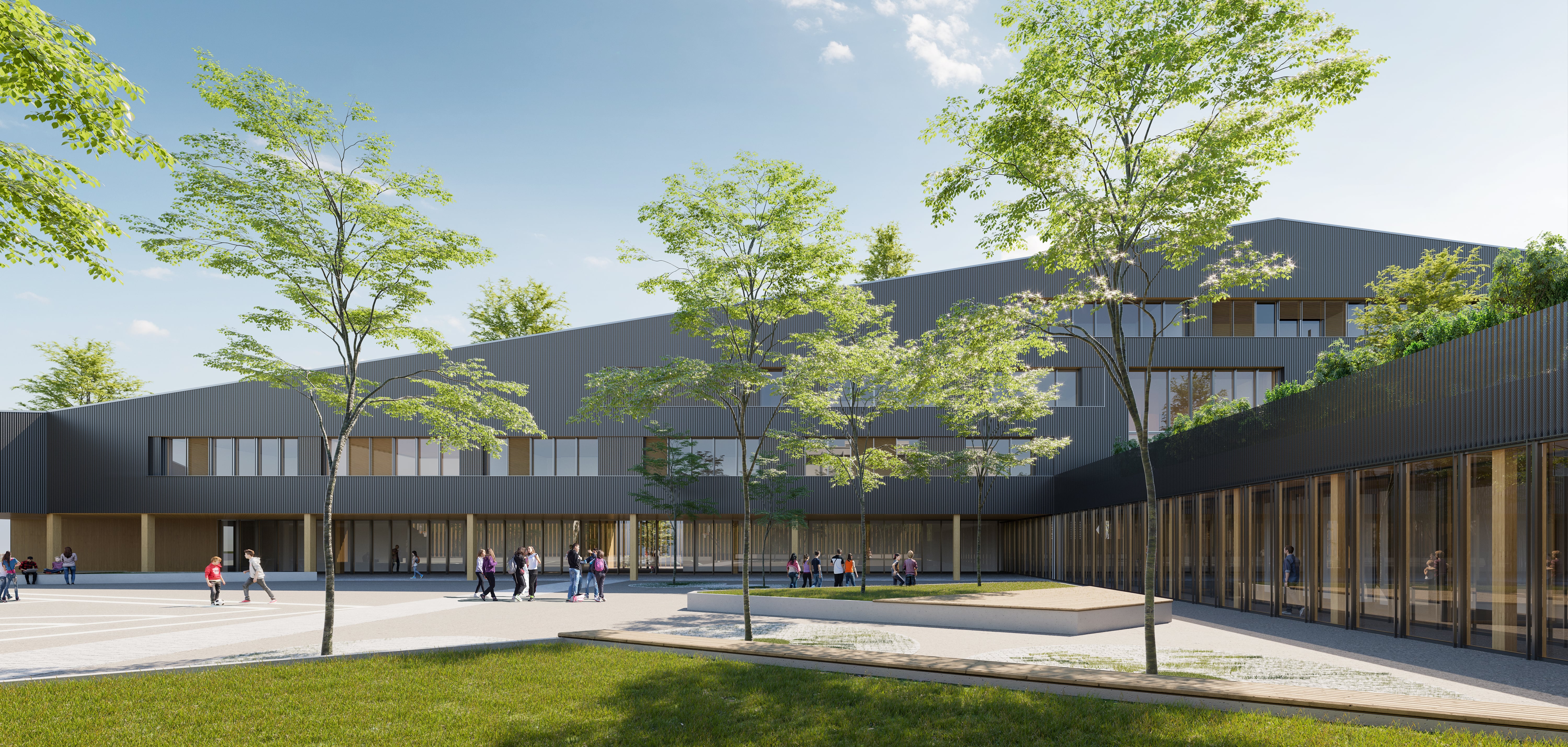 Un projet sobre, rationnel et efficace qui par sa rigueur fonctionnelle permet une plus grande liberté dans la vie intérieure toujours renouvelée d’un collège. Des espaces bien que poreux, lisibles et simples dans leur utilisation, leur matérialité comme dans leur volume pour un bâtiment flexible et évolutif. De nombreuses respirations, retrait par patios en façade ou encore des extrusions dans le volume pour créer des apports lumineux et végétaux, permettent d’aérer le bâtiment et de s’affranchir encore une fois de la notion d’enceinte.