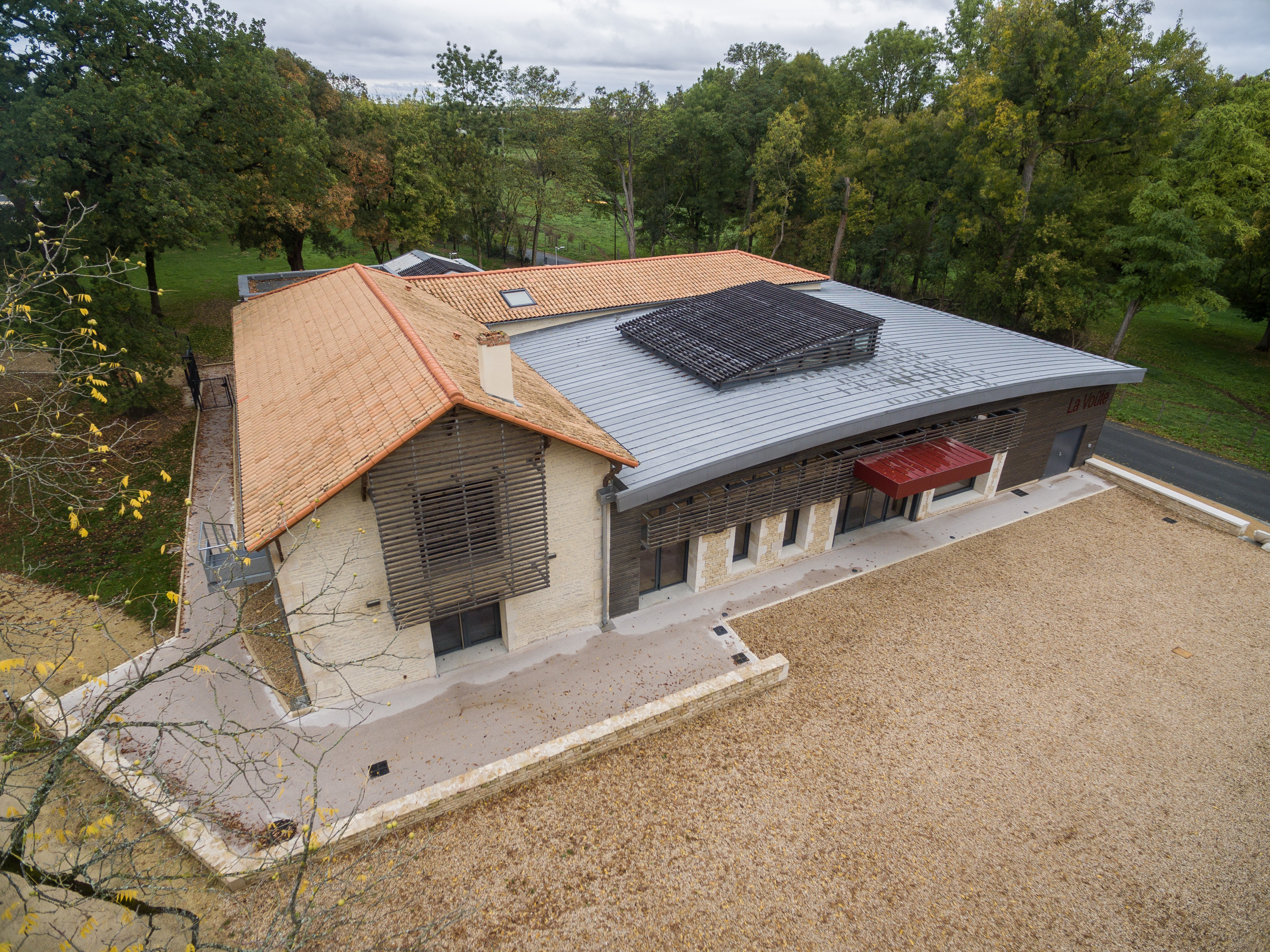Approche environnementale : Utilisation majoritairement de produit naturel: Bois en structure et façades Choix pour les parements pierres Zing sur la couverture cintré Baie vitré importante sur les façades ( apports solaire) Régulation naturel de la chaleur en été pour éviter la surchauffe du bâtiments