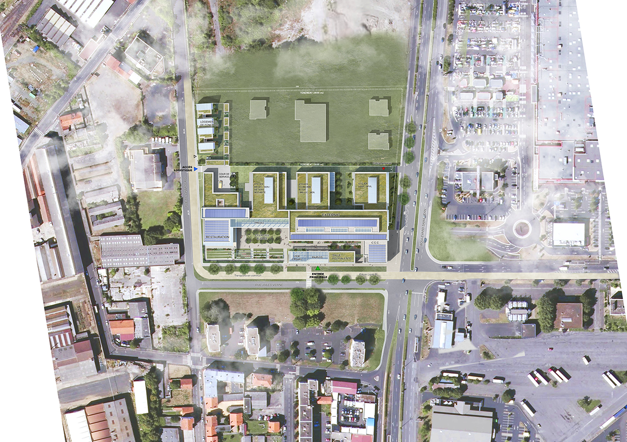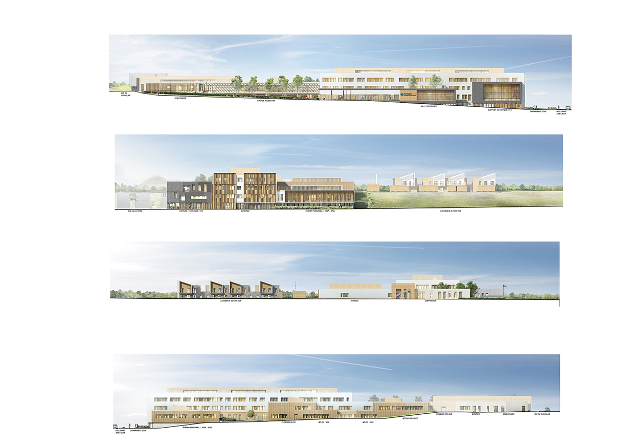 Le lycée Gergovie accueille 1000 élèves au sein d’un quartier industriel en reconversion, le Quartier Saint-Jean, à Clermont-Fd. Il comprend des locaux d’enseignement, généraux et techniques, des locaux de vie scolaire et d’administration, une demi-pension, une salle polyvalente et 8 logements de fonction. Le parti architectural propose d’exprimer avec force un projet d’envergure européenne, ancré dans son territoire, avec la mise en évidence de savoir-faire et ressources locaux. Le système constructif écologique et l’utilisation massive de matériaux biosourcés caractérisent cet ouvrage.