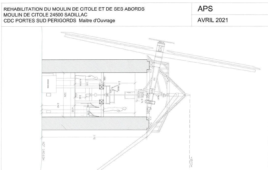 Le moulin de Citole à Sadillac, édifié en 1765 a perdu son toit. Pour cela il a fallu restaurer la couverture, la charpente, le mécanisme et le mobilier de mouture (toit, escaliers, meules, ailes système BERTON, système de meunerie), mais aussi le fût en pierre. La nouvelle charpente en Chêne (façonnée en atelier) est posée sur le moulin avec un voligeage en lames de peuplier. Les couvertures sont en bardeaux de châtaignier. Le moulin est recoiffé en début d’année. Le plancher est en chêne avec traitement en verre trempé transparent permettant d’éclairer le mécanisme de mouture depuis le Rdc.