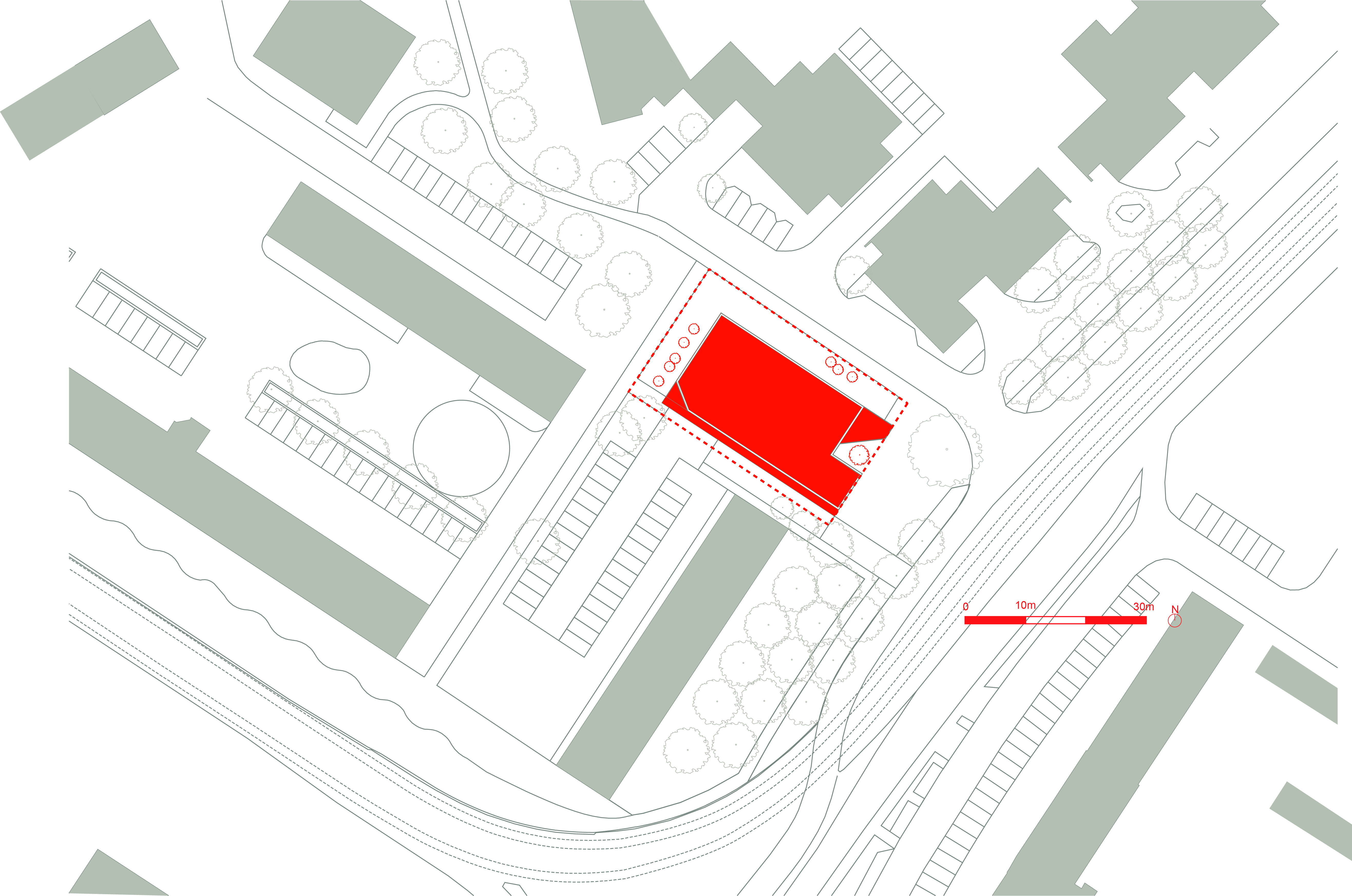 Descriptif technique : 3 niveaux: parking semi-enterré et 2 niveaux accessibles au public. Le parti architectural repose sur une volumétrie relativement basse pour le quartier cherchant ainsi à afficher son accessibilité et son rôle de service de santé ouvert à tous les publics. Le plan est rectangulaire et régulier, adapté au programme souhaitant une modularité des espaces intérieurs. Les angles est et ouest sont marqués par des inflexions des façades pour signifier sa relation au site : sur le parvis, le volume est creusé, mettant le hall en relation avec l’espace public ; l’entrée principale, surplombée d’une terrasse végétalisée, et d'une salle pour l'accueil du public sont placées au premier plan ; sur le cœur d’îlot, en lien avec les immeubles résidentiels : entrée du personnel et salle de pause/loggia.