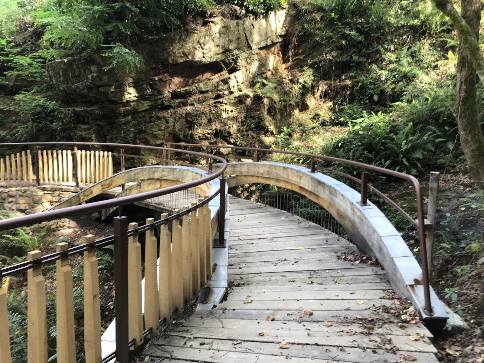 Le pont est situé dans un environnement végétal complet, sans quasiment aucune construction présente dans le champs de vision. L'utilisation de bois pour sa construction est une aubaine pour permettre de se relier à la nature du site.