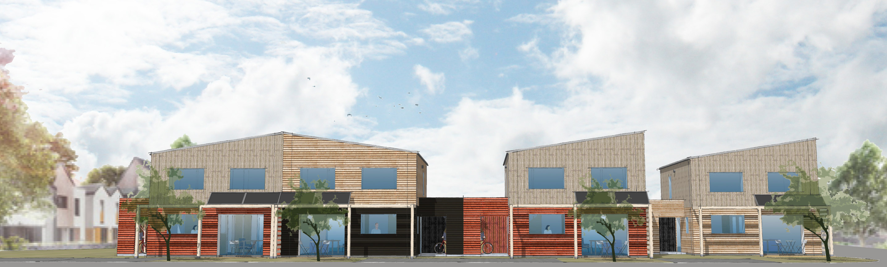 Ekoloko c’est un regroupement inédit d’artisans et de concepteurs locaux de maisons bioclimatiques et biosourcées qui a permis de réaliser une solution clé en main d’habitat confortable et performant, 4 maisons mitoyennes écologiques et locales dans l'éco-quartier de Maison Neuve à Guérande. Pour l'occasion, notre groupement d’entreprise BTP (Bois-Terre-Paille) a pu mettre en avant les compétences artisanales locales des filières bois, paille et terre crue et ainsi montrer qu'il est possible de réaliser des maisons biosourcées et performantes à coût maîtrisé.