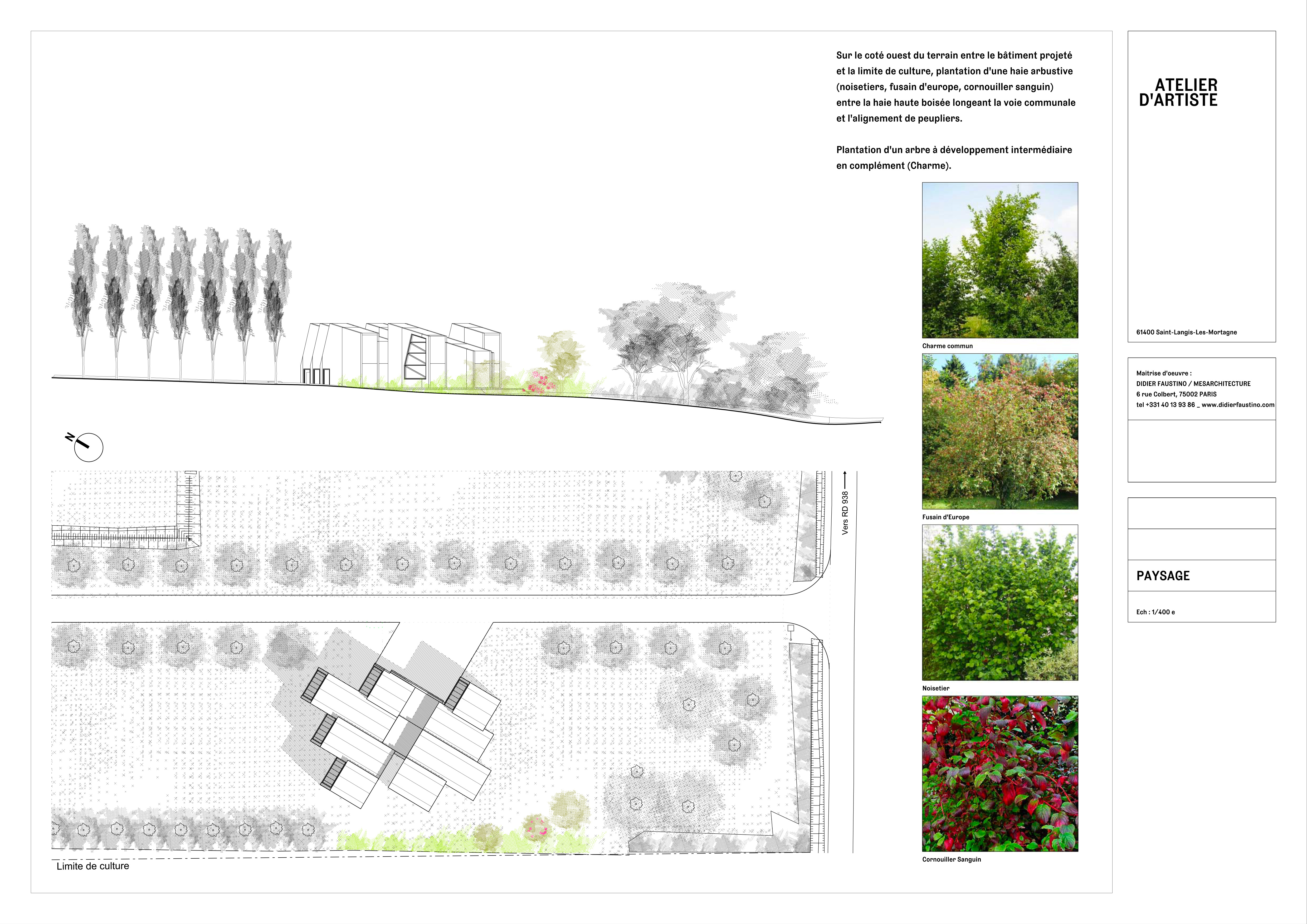 Conformément au souhait du commanditaire, le projet a été pensé comme une usine pour une personne, reprenant et réinterprétant la forme du shed. La métaphore de l’usine est renforcée par l’utilisation de volumes identiques, jumelés les uns aux autres et par de grandes ouvertures côté nord qui permettent d’obtenir une lumière uniforme à l’intérieur. Des espaces identiques s’enchaînent différemment pour travailler : l'unité de base de 40 m2 est dupliquée plusieurs fois selon les activités nécessaires à l’artiste (dessin, repos, usinage, etc.). Avec sa peau noire mate, il se fond dans le paysage.