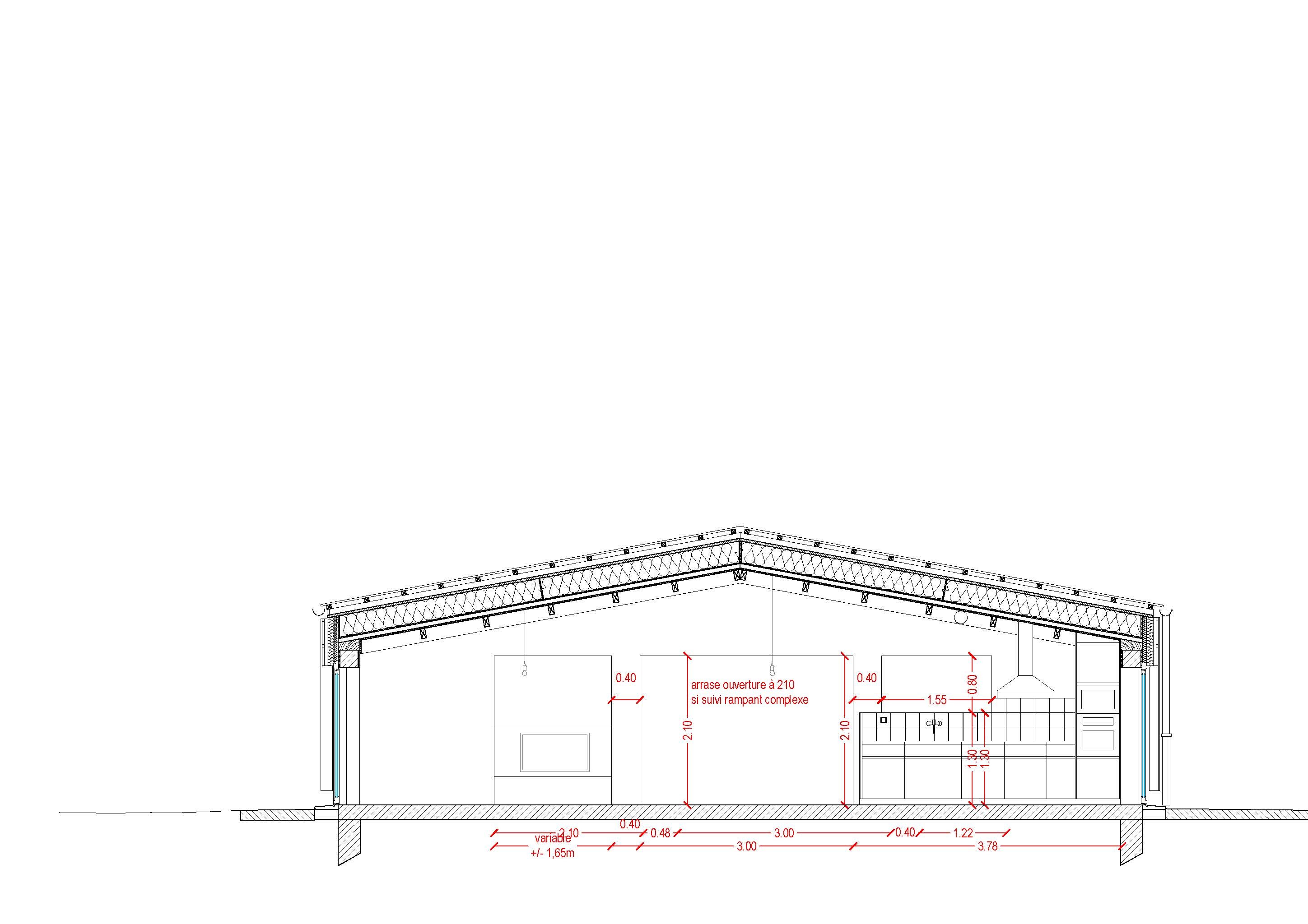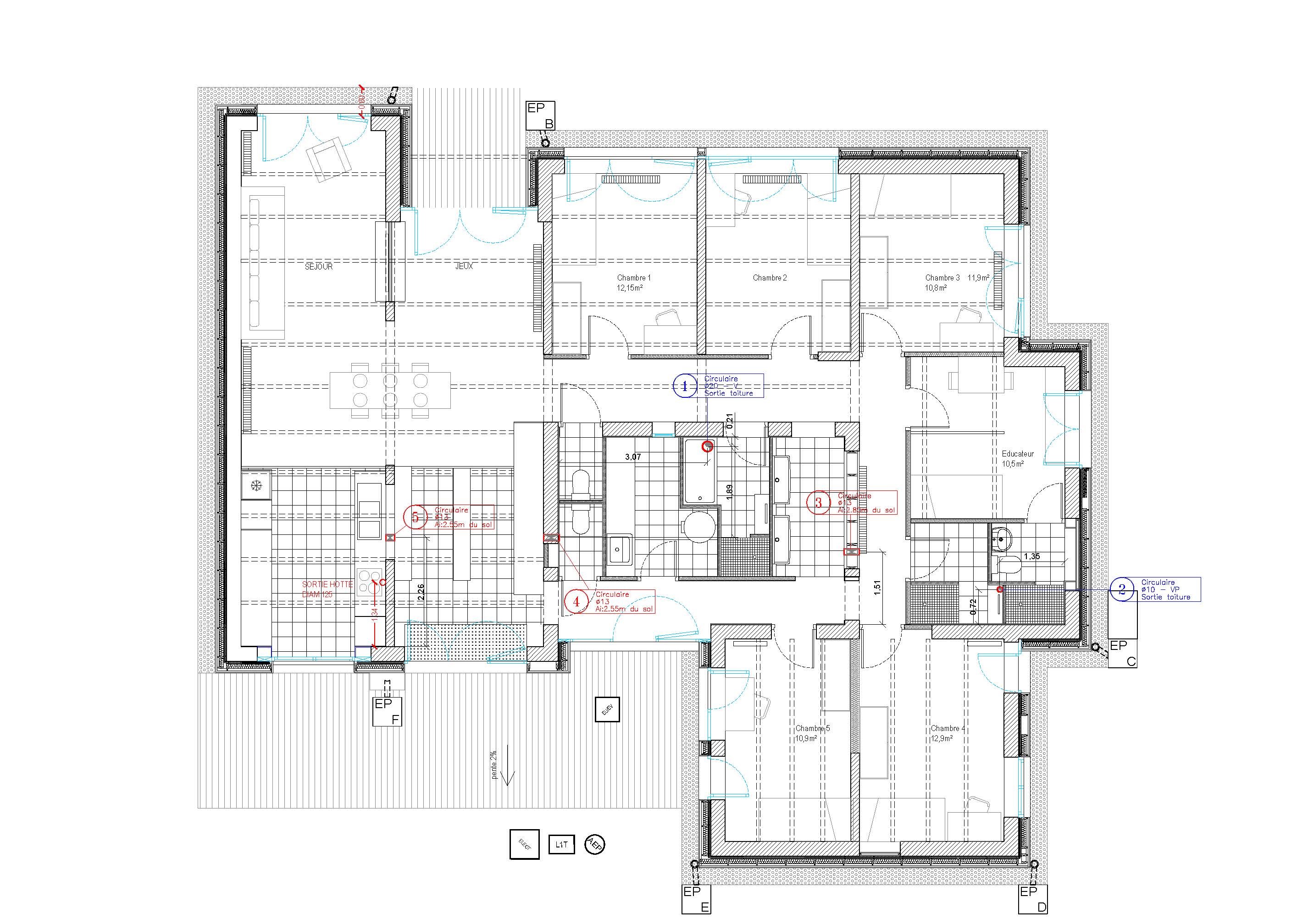 Descriptif technique : mur existant : parpaing sans isolation ITE : ossature + 160mm de fibre de bois en 2 couches croisées dans ossature R4.44 élévation de toiture : insufflation de 300cm de ouate + 35mm de panneau fibre de bois soit un R total de 8,08 m²K/W menuiseries bois/alu pose en tunnel ext. du mur au contact de l'ITE liège de 80mm en bas de mur