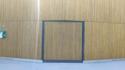 Ce nouvel accès permet de distribuer l'ancienne salle ainsi que l'extension et ses vestiaires destinés aux collectifs. Les salles seront communicantes grâce à la présence d'une paroi amovible entre les deux. Le nouveau volume pourra également être divisé en 2 espaces grâce au principe de paroi amovible permettant une flexibilité des usages. La structure primaire de l'extension est composée de portiques en bois et l'enveloppe du bâtiment est en ossature bois avec en partie haute la présence de Dampalon (blanc Crystal), permettant un apport diffus de lumière naturelle tout au long de la journée.