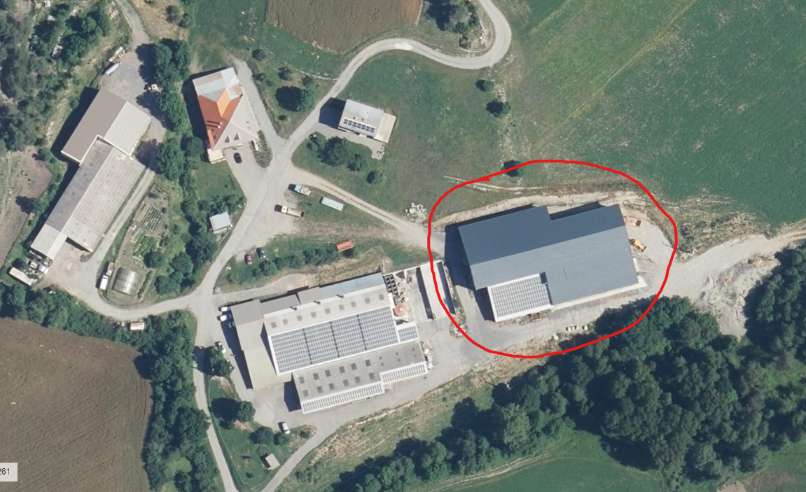 Descriptif technique : Structure poteaux-poutres en sapin des Vosges. Sections en lamellé collé de grande longueur pour recevoir le pont roulant soutenant la griffe à foin. Bardage en pin auto clavé vertical rainé bouveté origine France. Panneaux OSB pour l’agencement des cellules de séchage. Toiture en bac acier. Superficie totale 1 440 m² dont : • 840 m² : Grange de 15m x 56m (dont 600 m² pour les 4 cellules de séchage) (≈ 120 tonnes de foin /cellule) et ventilateur, • 210 m² : Abri à matériel - Appentis de 7m x 30m sur un côté, • 390 m² : Stabulation génisses en appentis de 13m x 30m.