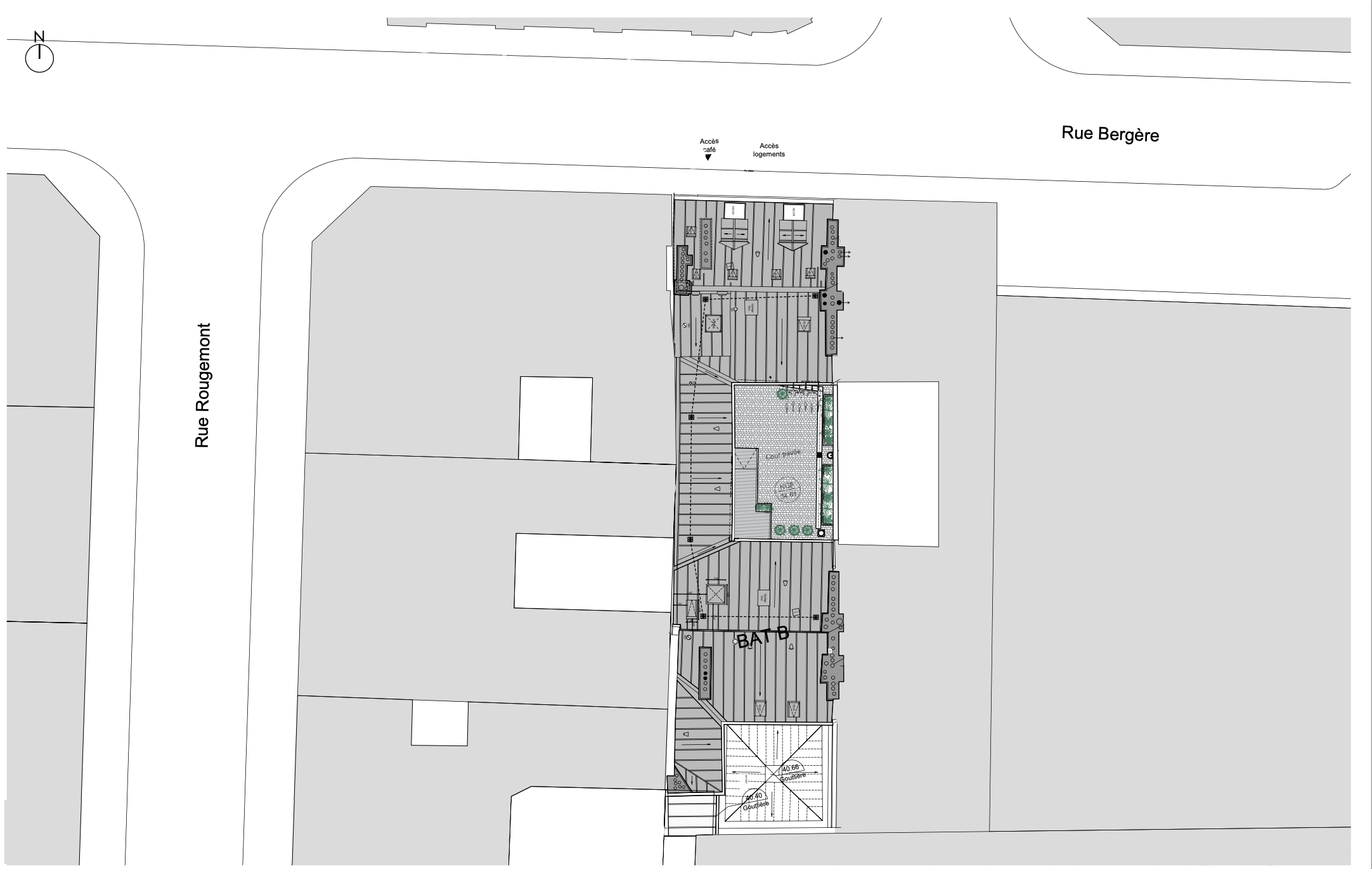 Descriptif technique : Le bâtiment, immeuble de faubourg suit l’alignement de la rue. Le socle accueille deux commerces sur rue, un commerce en fond de parcelle et une cour intérieure. Les planchers d’étages existants sur solivage sont renforcés ou remplacés par des planchers bois isolés entre solives. Les murs contreventant sont en moellons et les autres murs sont en pans de bois. Certains pans de bois entier ont été refait à l'identique ou rénovés par substitution de pièces de bois. La charpente d’origine est rénovée et les pièces abimées remplacées. Une partie de la charpente est refaite à neuf dû aux trop faibles sections de bois. Les deux escaliers ellipsoïdales sont restaurés.