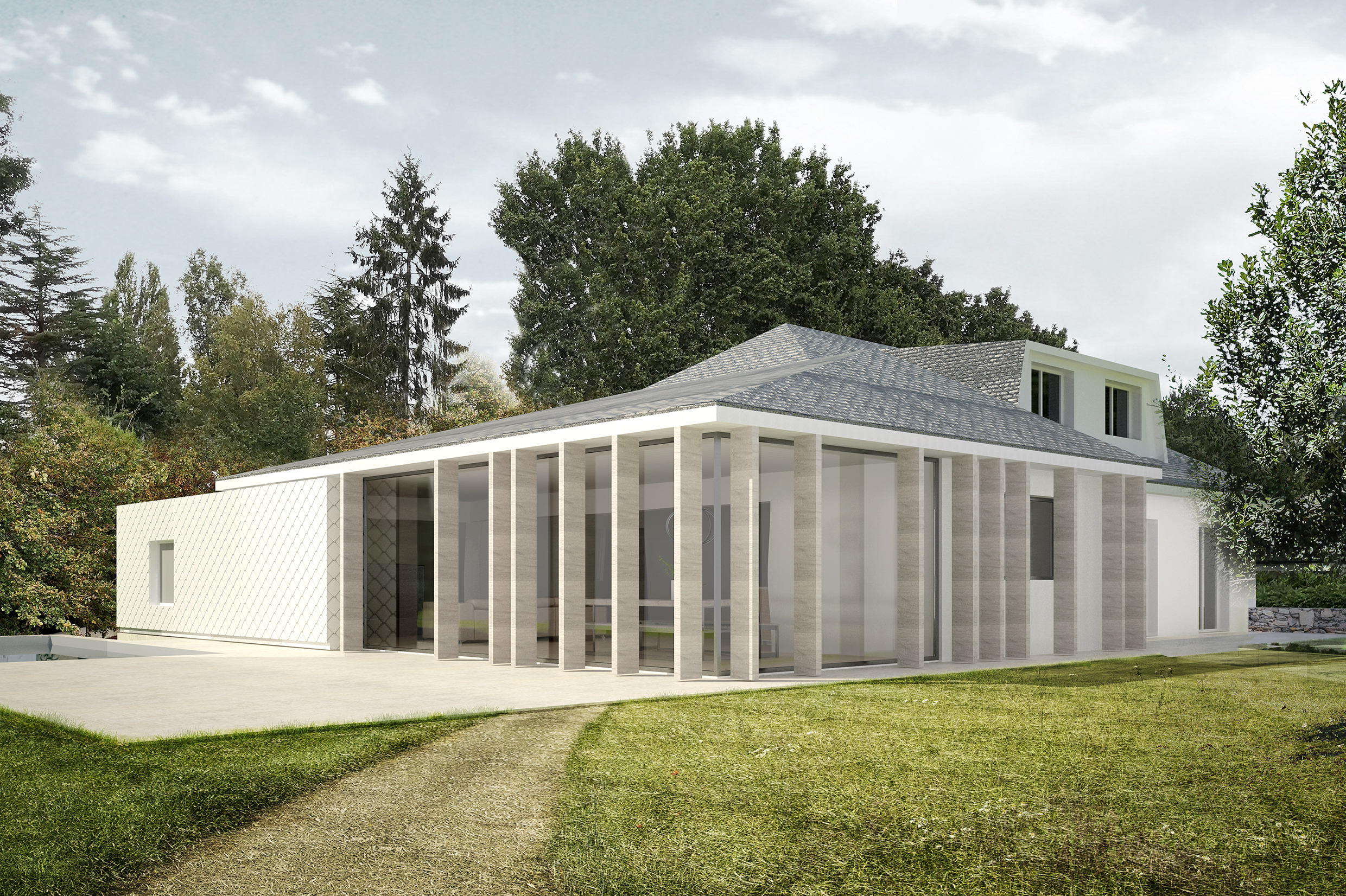 Le projet de rénovation d'une maison des années 70 s'accompagne d'une extension de 65m². L'objectif était d'intégrer l'extension au bâti existant tout en apportant une touche contemporaine. Nous avons donc pris le parti de prolonger la toiture et la casquette de la maison existante sous lesquels se sont glissé 2 volumes, un volume vitré, transparent, un volume plein, en tuiles aluminium losangées. Afin d'amplifier l'effet d'accroche entre l'extension et l'existant, des persiennes en bois ont été installées à l'extérieur, sous la casquette. Elles protègent ainsi du soleil et des vis-à-vis.