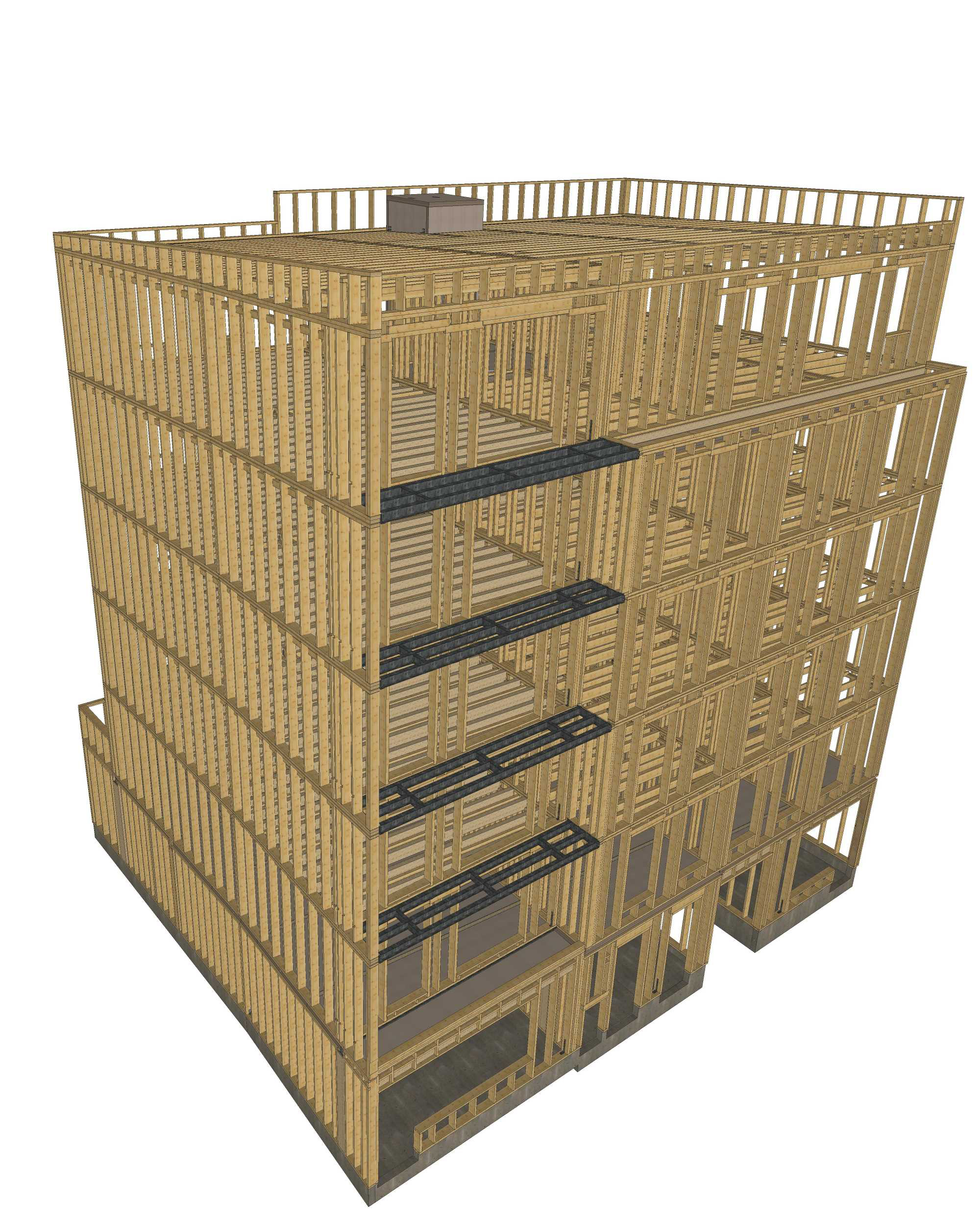 Descriptif technique : Construction de 6 niveaux en ossature bois de 200x45 Planchers à double solivage + chape sèche Cage d'ascenseur en CLT Murs finis (bardage, isolant, menuiseries, serrurerie) livrés d'usine (pas d'échafaudage) Menuiseries bois triple vitrage et occultations par volets bois coulissant Bardage bois pré-grisaillé en Mélèze (façade Sud) et en Douglas (autres façades). Ventilation double flux à récupération de chaleur, récupération de chaleur statique sur EU, pas de radiateur Etanchéité à l'air à 0,48N-1 et Q4=0,17m3/(h.m2) pour 0,6 RT2012 Une chaudière gaz de 20kW pour 17 logements. Ready BePos avec attentes PV en toiture pour 130m2 (30kWc) Réemploi de la structure bois du hangar pré-existant pour la réalisation du mur séparatif en fond de parcelle et réalisation du carré potager.