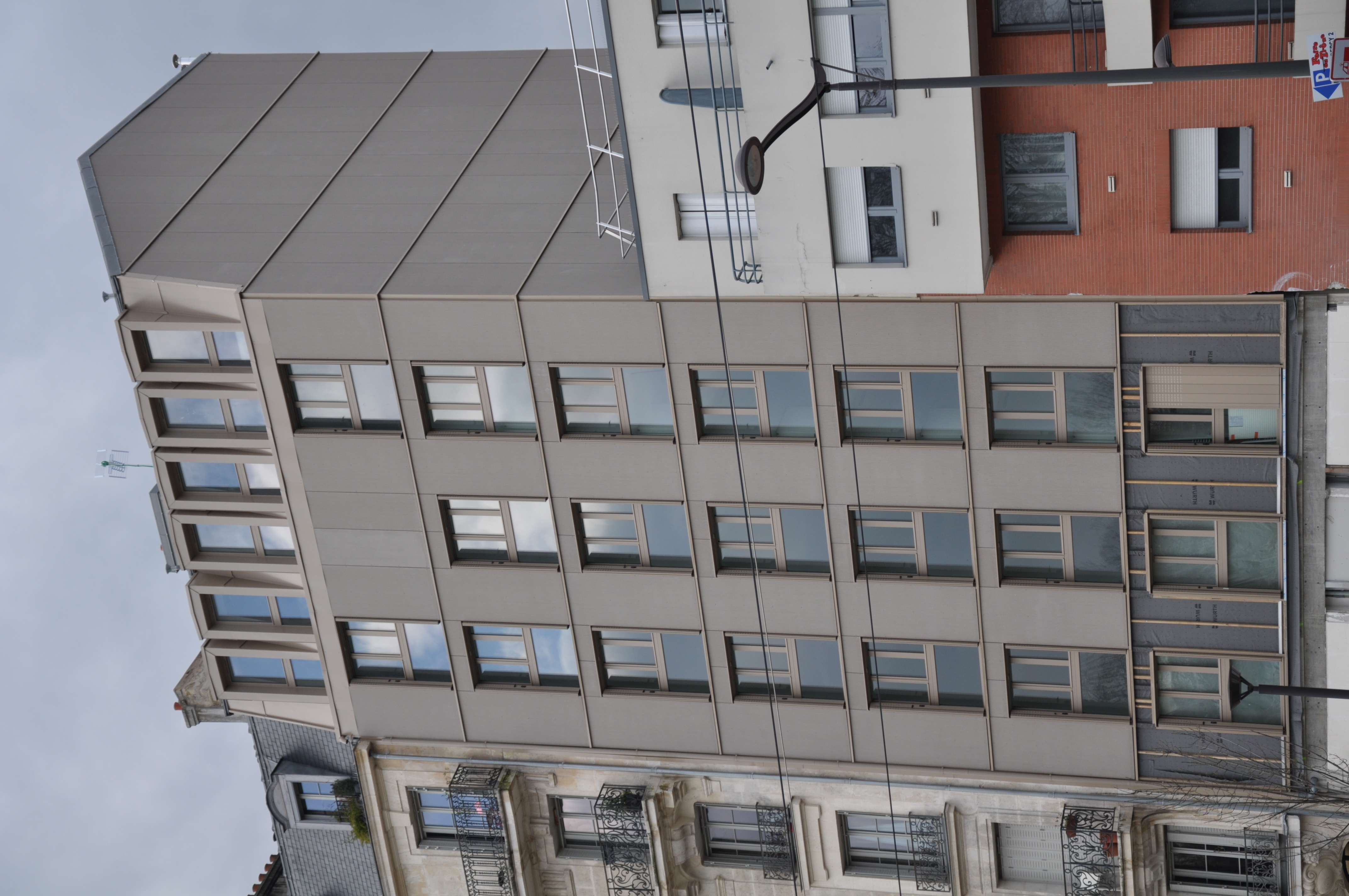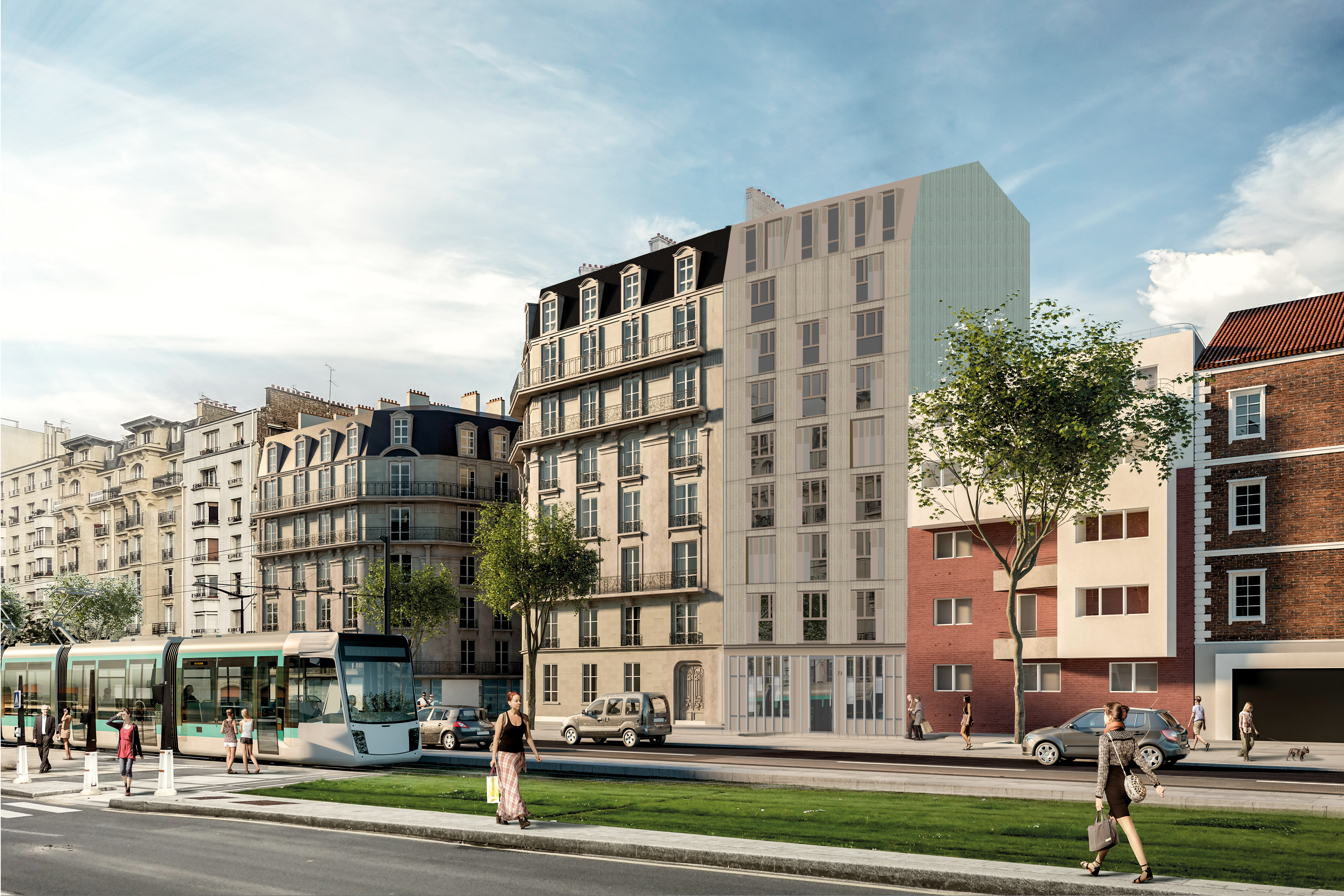 *La "maison cocon" abrite une résidence sociale et une pension de famille desservant 35 logements à R+9 et une maison individuelle. Le rez-de-chaussée est dédiés aux espaces communs et aux bureaux de l'équipe sociale. Un jardin en fond de parcelle offre un petit havre de paix à côté du boulevard Poniatowski. *Hormis les fondations, le rez-de-chaussée et la circulation verticale en béton, la structure est réalisée avec le système poteaux-poutres HighKi Wood. *L'enveloppe est en bardage Equitone linéa et tectiva. *Installation d'une PAC air-eau système Soraya pour préchauffer l'ECS