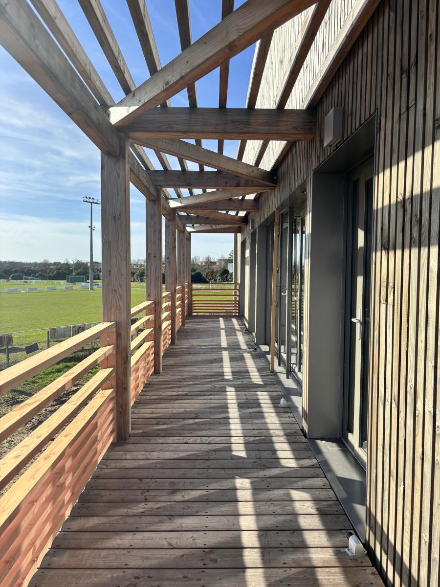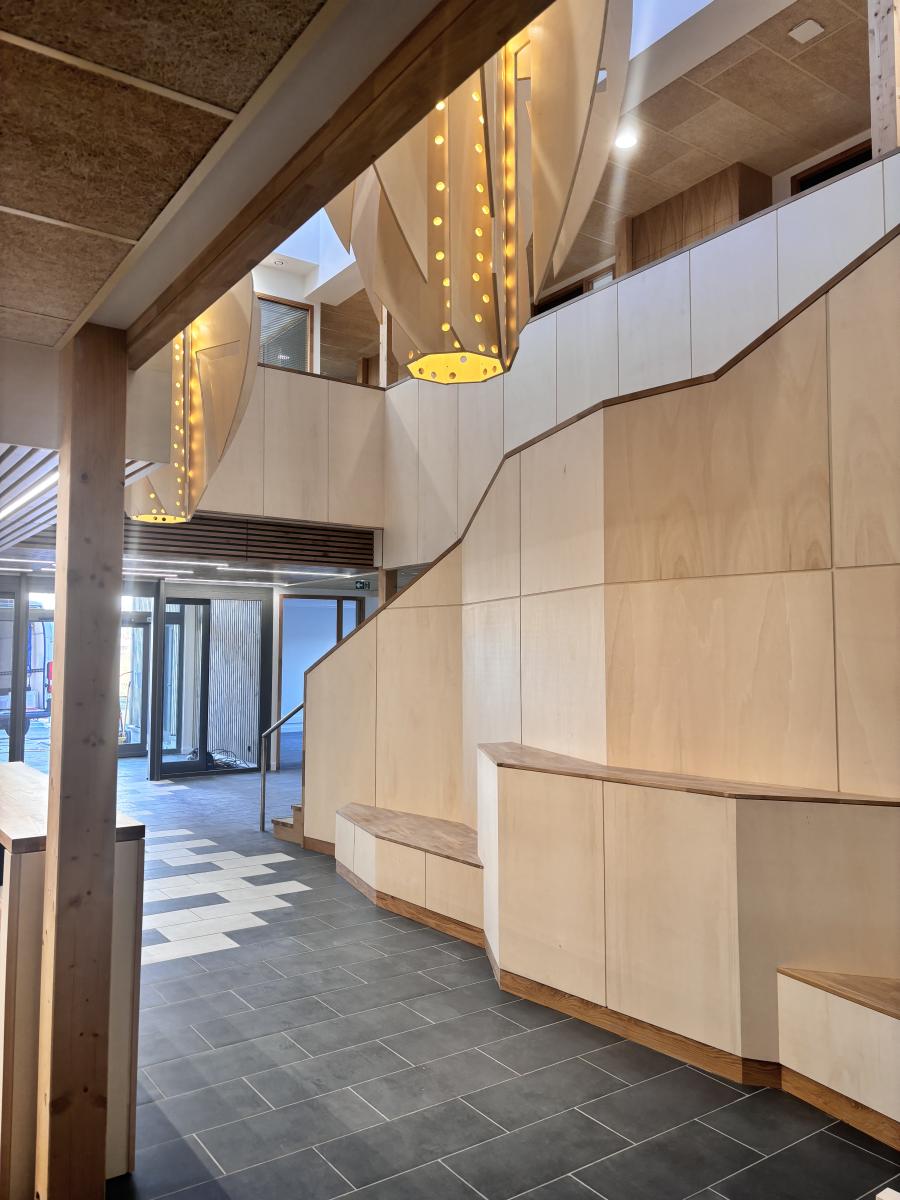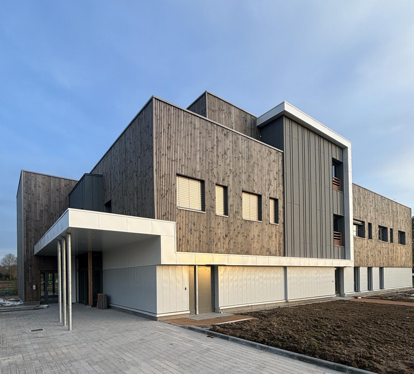 Descriptif technique : Une PAC permet le chauffage du bâtiment, elle est couplée à une ventilation double flux qui limite les pertes caloriques et permet de conserver au maximum la chaleur dans le bâtiment. Ajoutons à cela une isolation performante, des apports naturels de lumière et des appareils peu consommateurs d'énergie, et l'on obtient un bâtiment peu énergivore. La structure du bâtiment est en Epicéa (origine Europe du Nord), le bardage bois est en Douglas (PEFC / Bois de France), les huisseries sont en hêtre (origine Allemagne), Les habillages, escalier et mobilier sont en chêne (Bourgogne), Peuplier (PEFC) et Pin (Massif central). Les façades sont en MOB, isolés en panneaux de fibre de bois, les planchers sont en chape sèche sur poutres et solives bois. Le parquet est en chêne (Europe) semi massif.